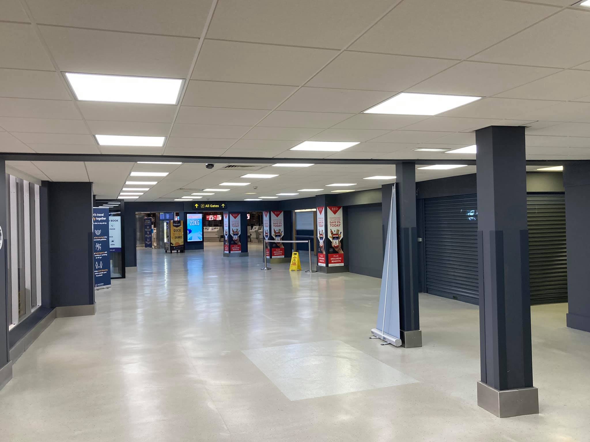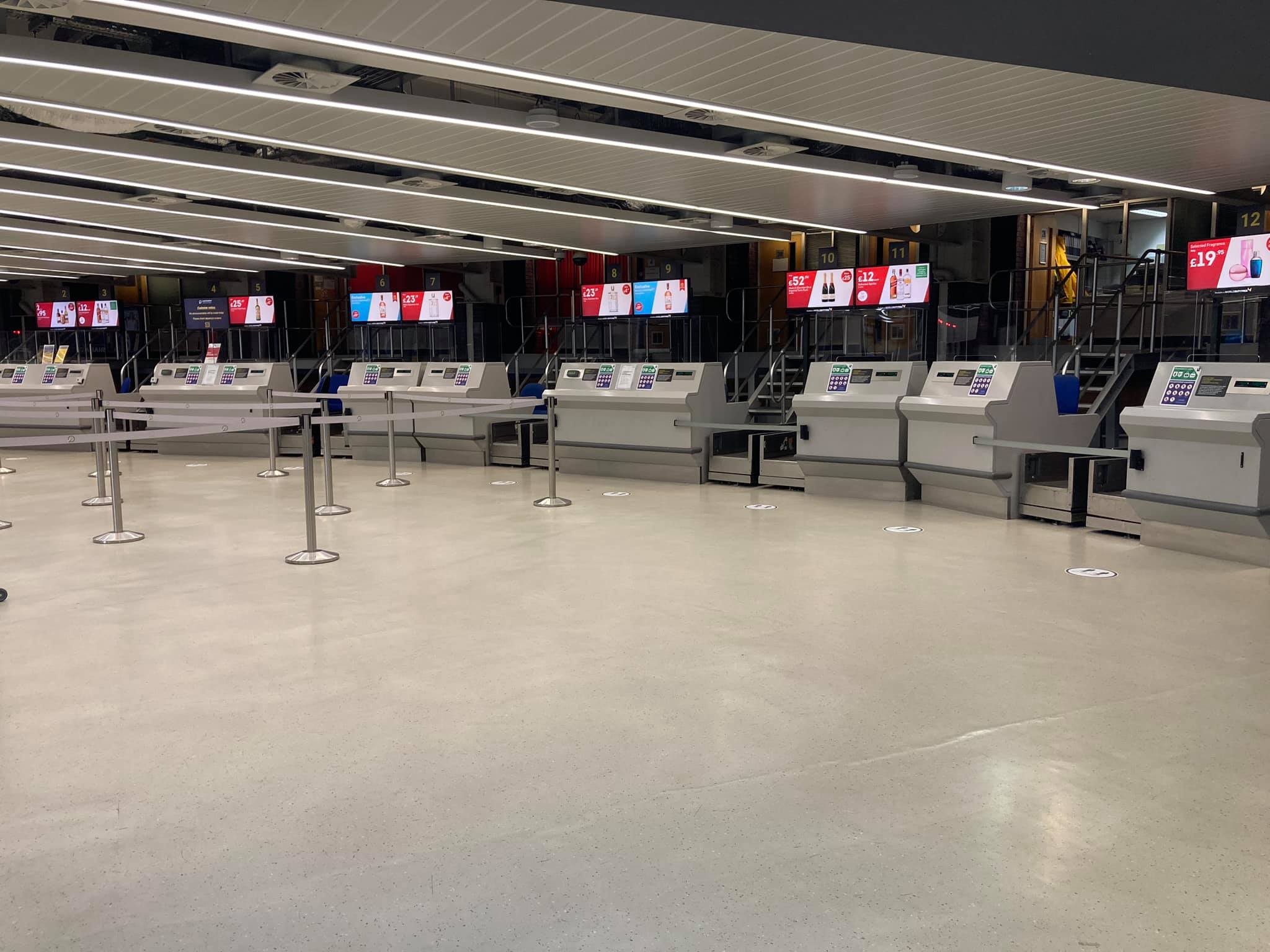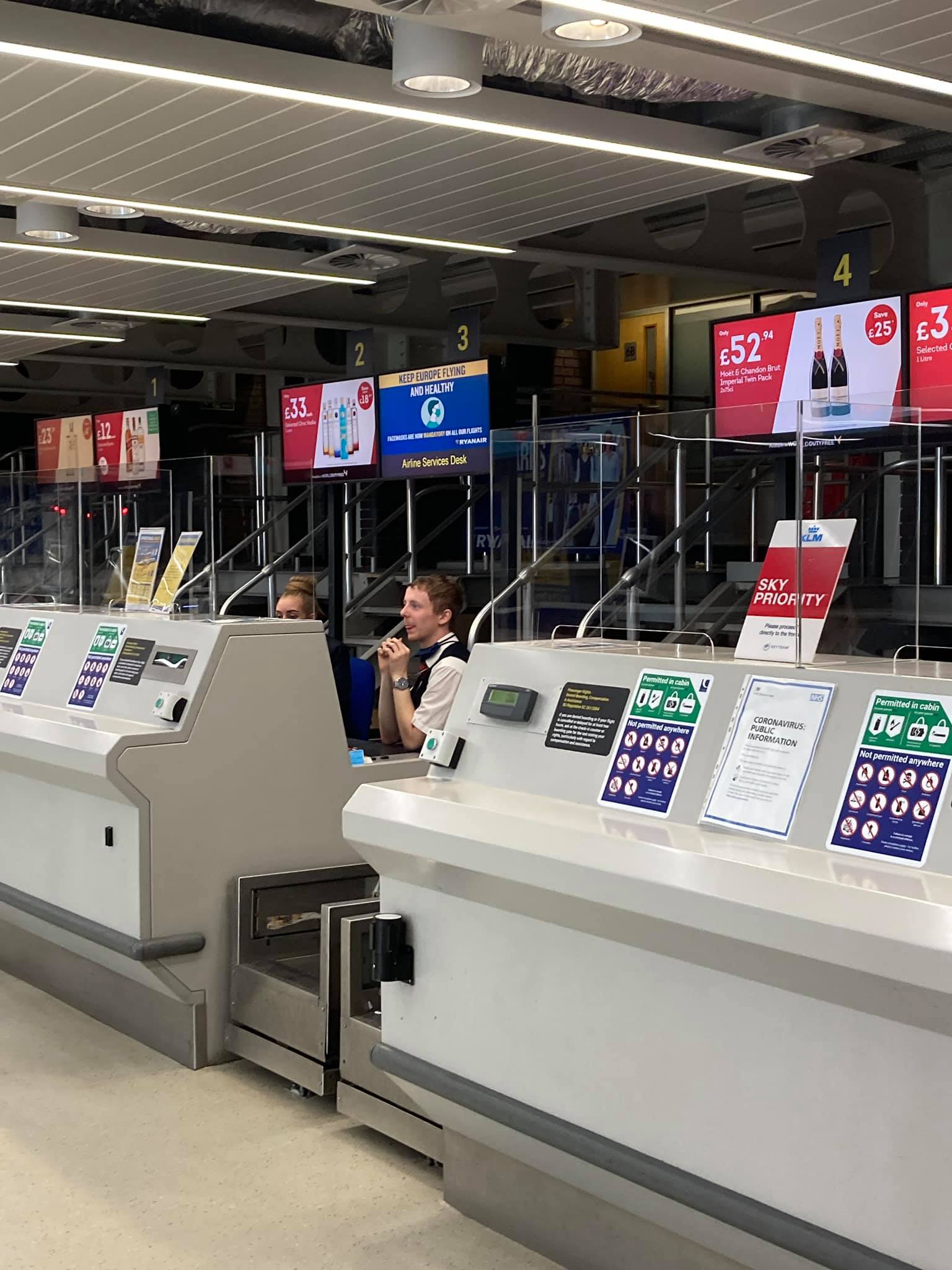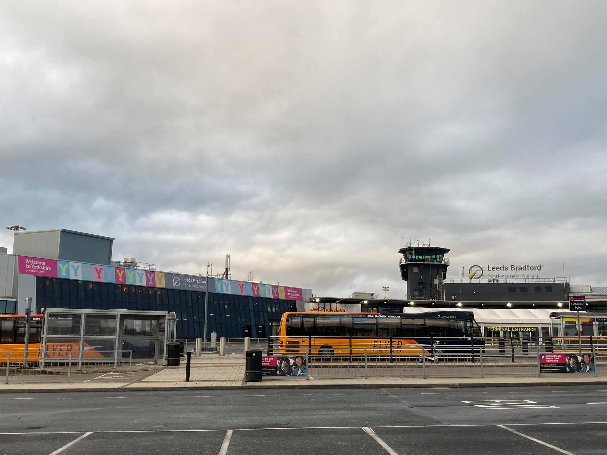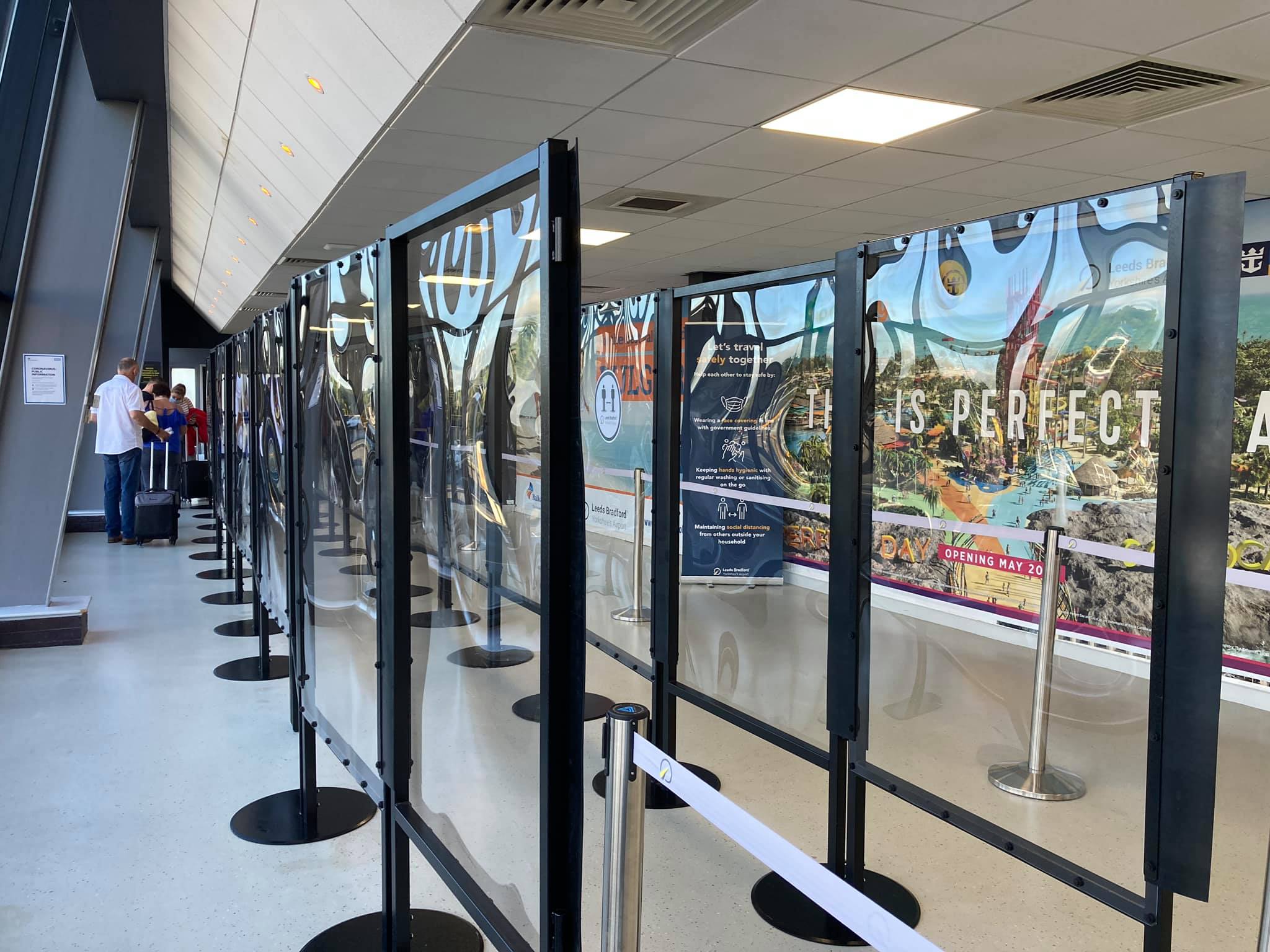 飛行當天來到Leeds Bradford空蕩蕩,送行親友無法進到航站樓,必須在建築物外就止步,乘客出示電子機票後才能進到航站樓。