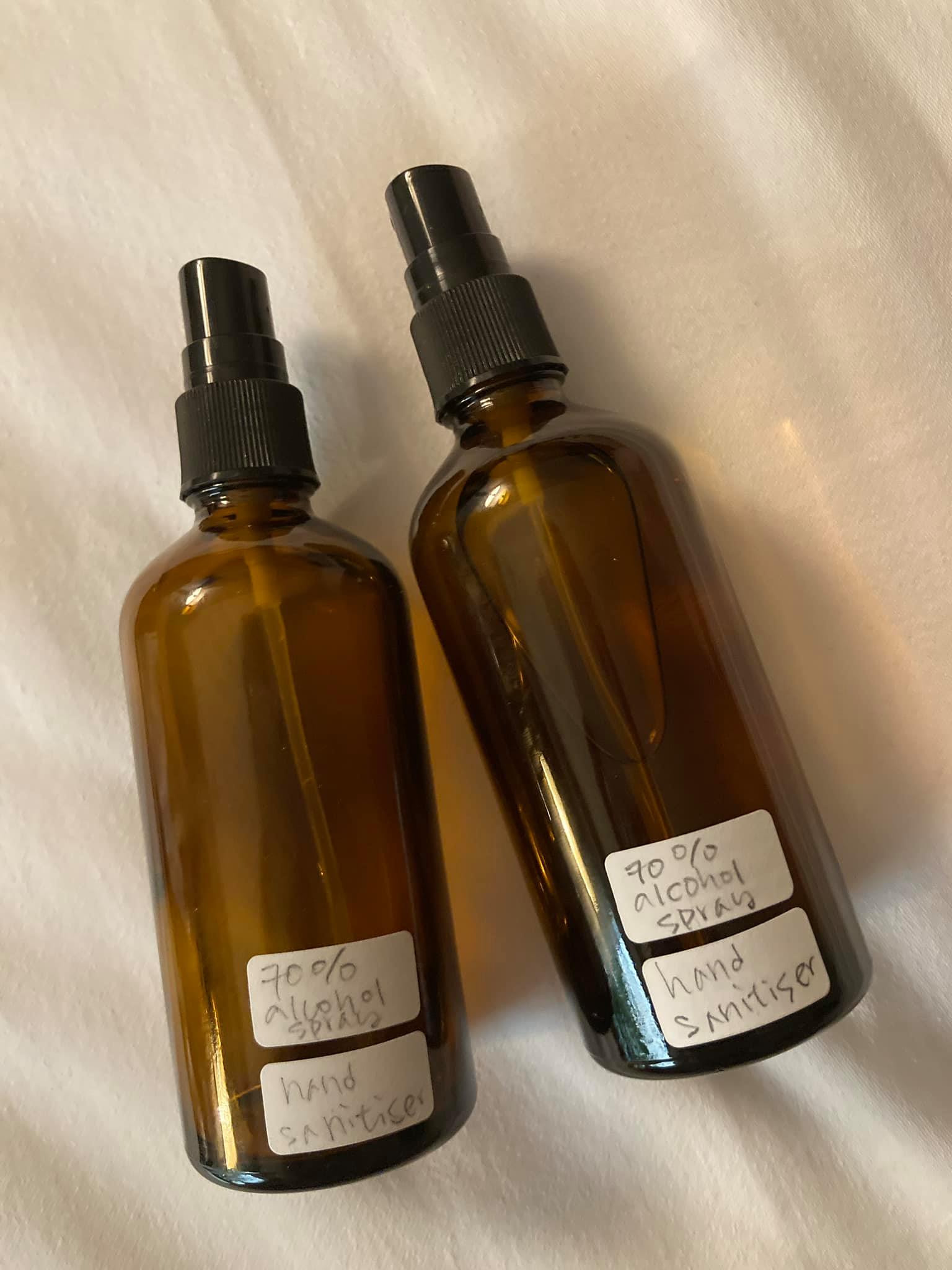 掛完行李前往安檢。我事先都有把所有要手提帶上飛機的液體都放在夾鏈袋裡了,內容物有消毒酒精噴霧,乾洗手,護手霜和護唇膏。依照飛安規定所有液體都必須少於100ml,總體積不可超過規定的夾鏈袋大小,因為疫情的關係放寬標準目前是可以帶消毒用酒精上飛機。我總共準備了2罐自己調製的消毒酒精噴霧,瓶身上標明70% alcohol spray / hand sanitiser。