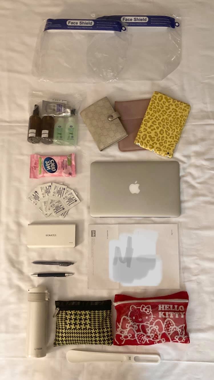 ✓防護面罩 x2 (除了臉上戴的那個面罩有刻意再多準備一個,主要是防止通關時萬一被要求取下,多次穿脫造成污染或重複消毒手忙腳亂,乾脆可以把第一個丟棄,換上另一個全新的。)