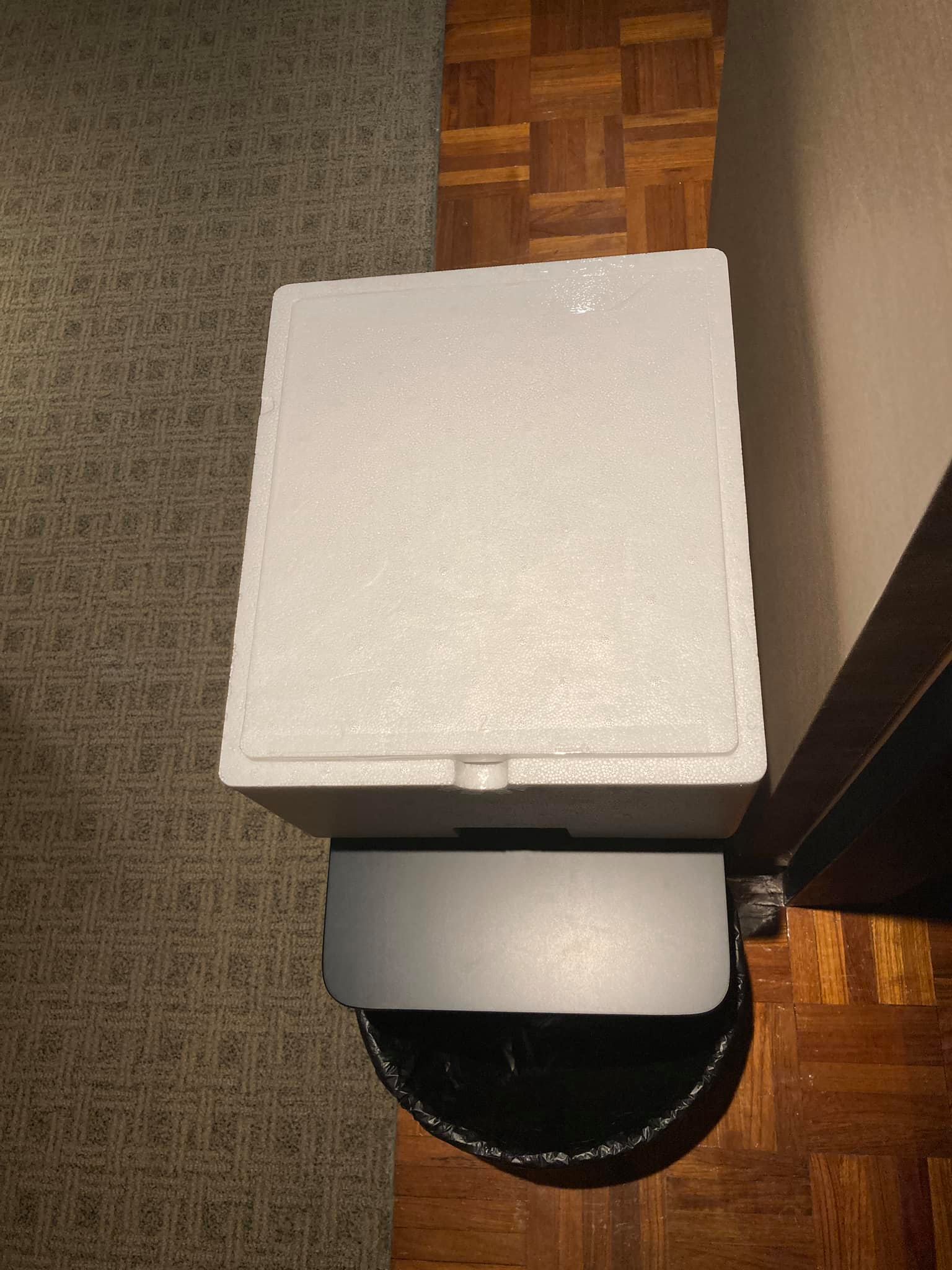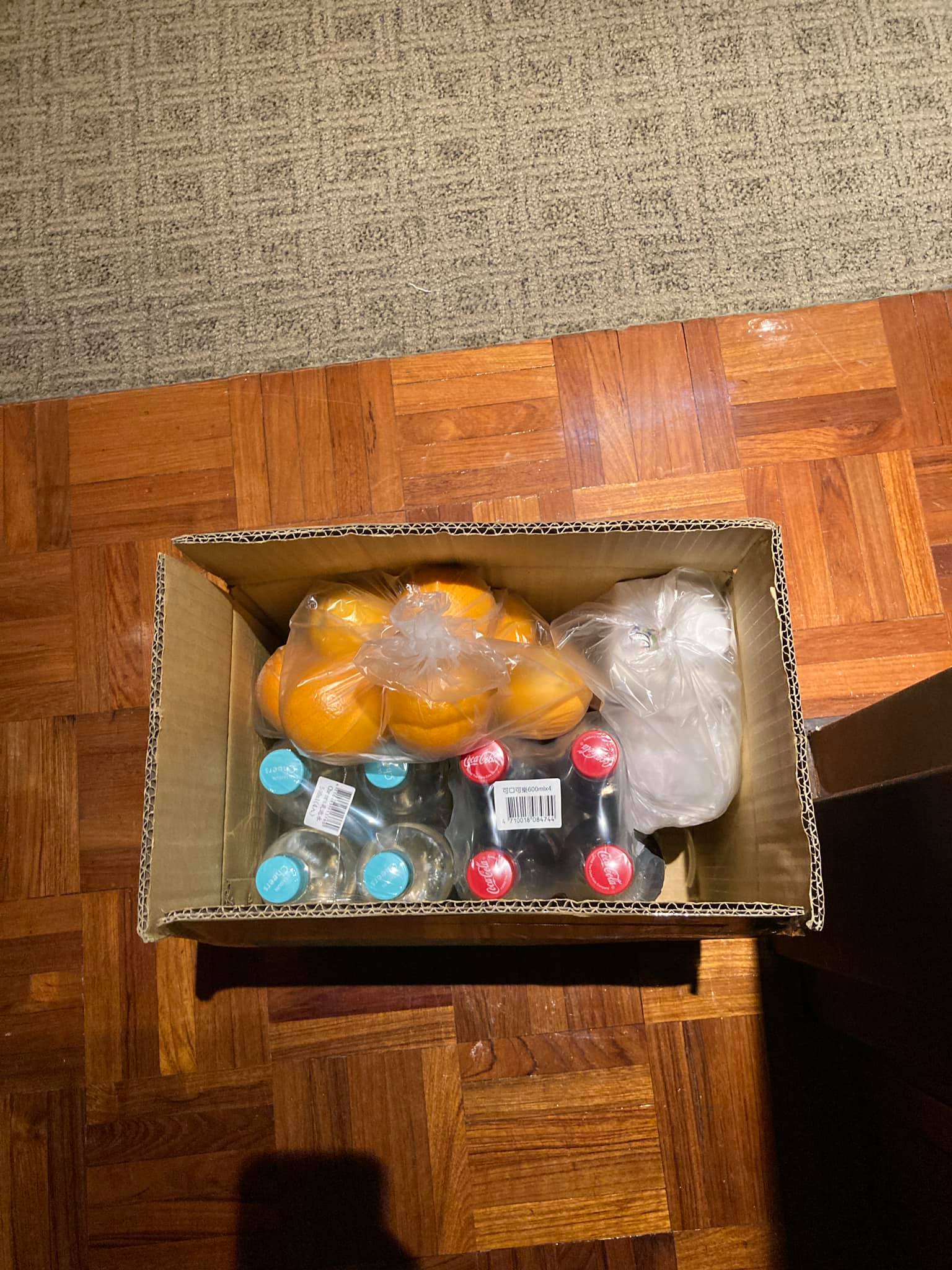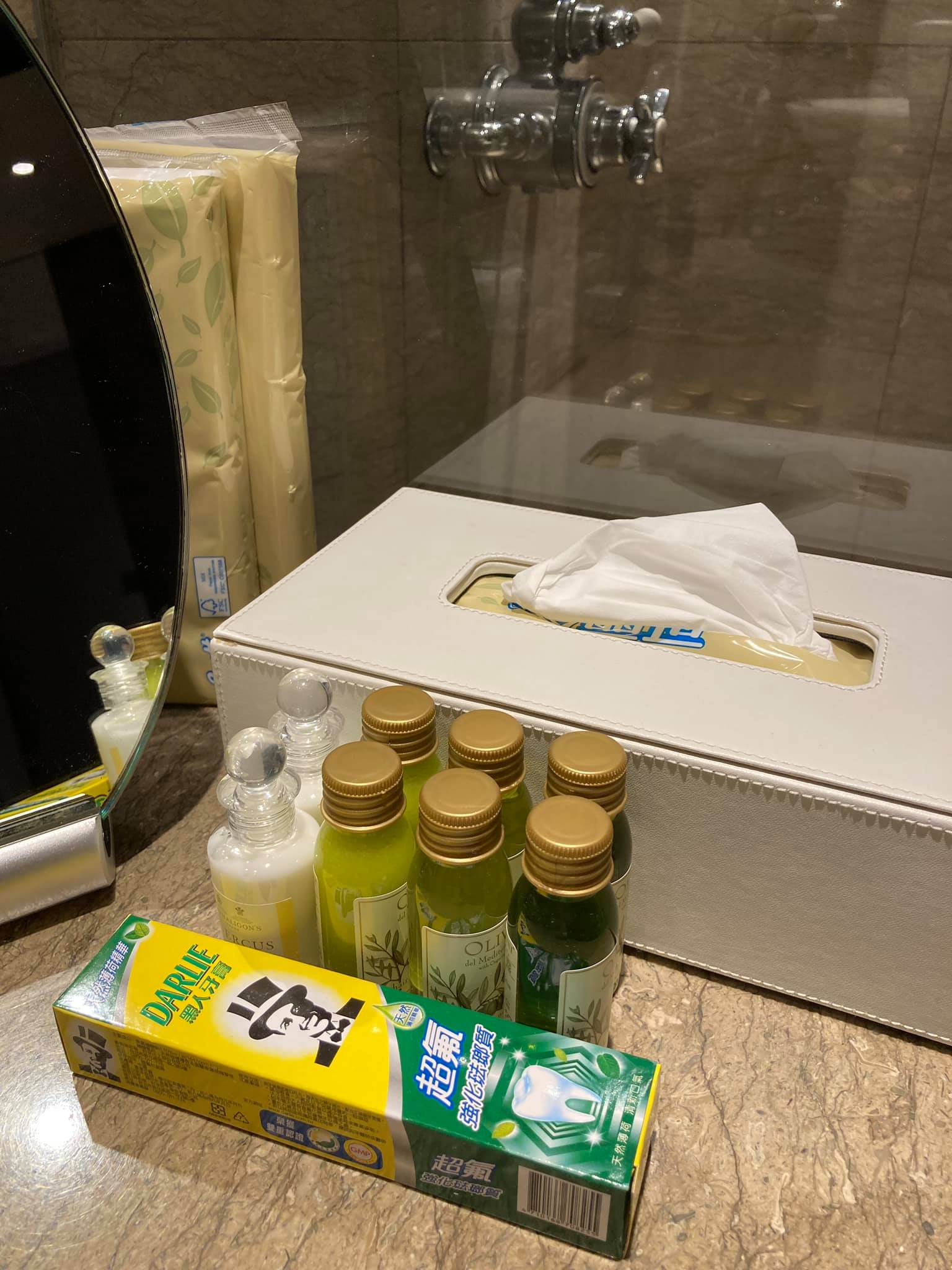 除了台北市政府給的防疫包以外,飯店也免費贈送了一些零食和泡麵,這些都是英國想買也買不到的寶貝!也備有體溫計,消毒酒精噴霧,簡單的清潔用品,曬衣繩及衣架。而我在幾天前的網購包裹也已經比我先到了,在房間裡等我。