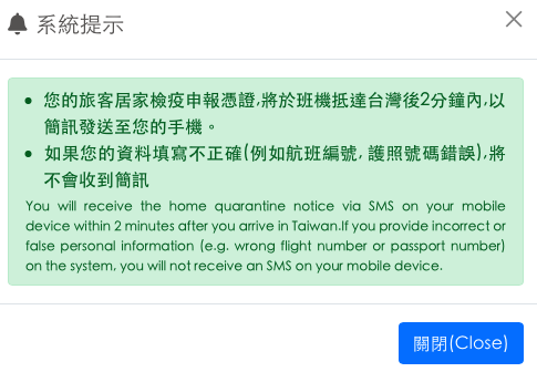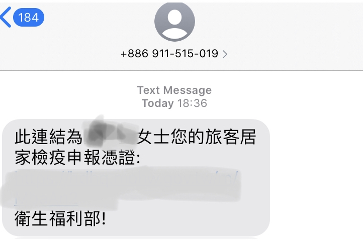 ➡飛機降落機場後手機開機,立刻收到衛福部簡訊提供「居家檢疫申報憑證」的網址