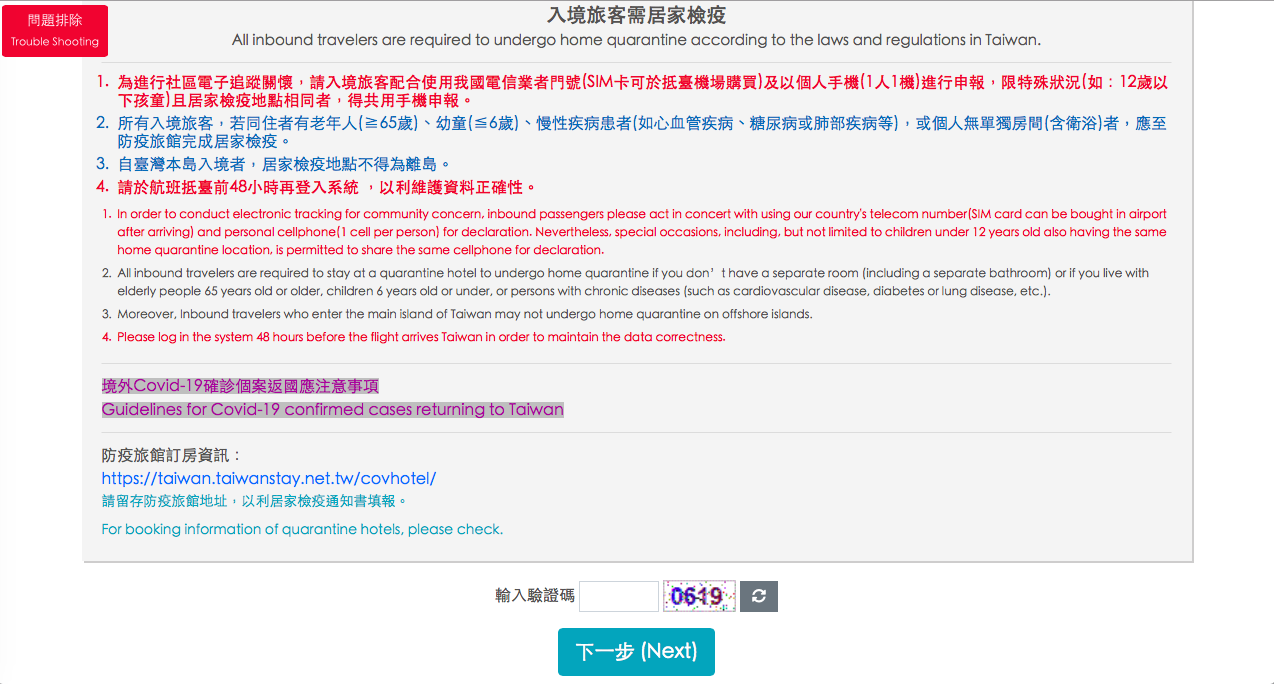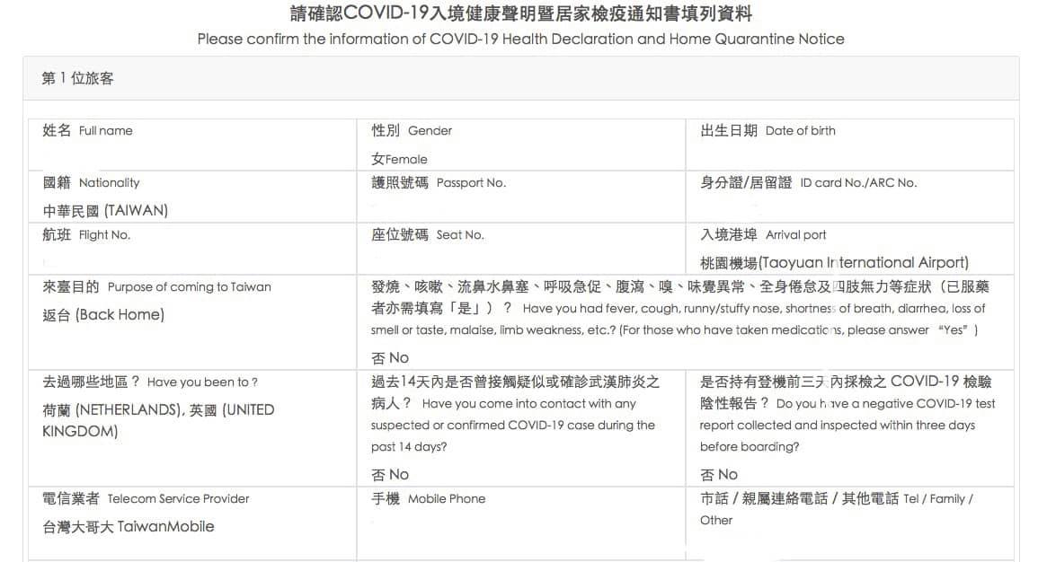 登機前48小時內先登入了衛福部的入境檢疫系統 (點擊查看)(Quarantine System for Entry)填寫健康聲明書。