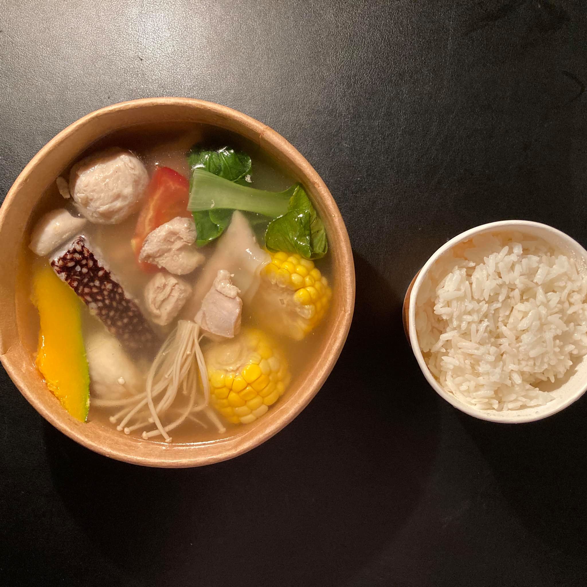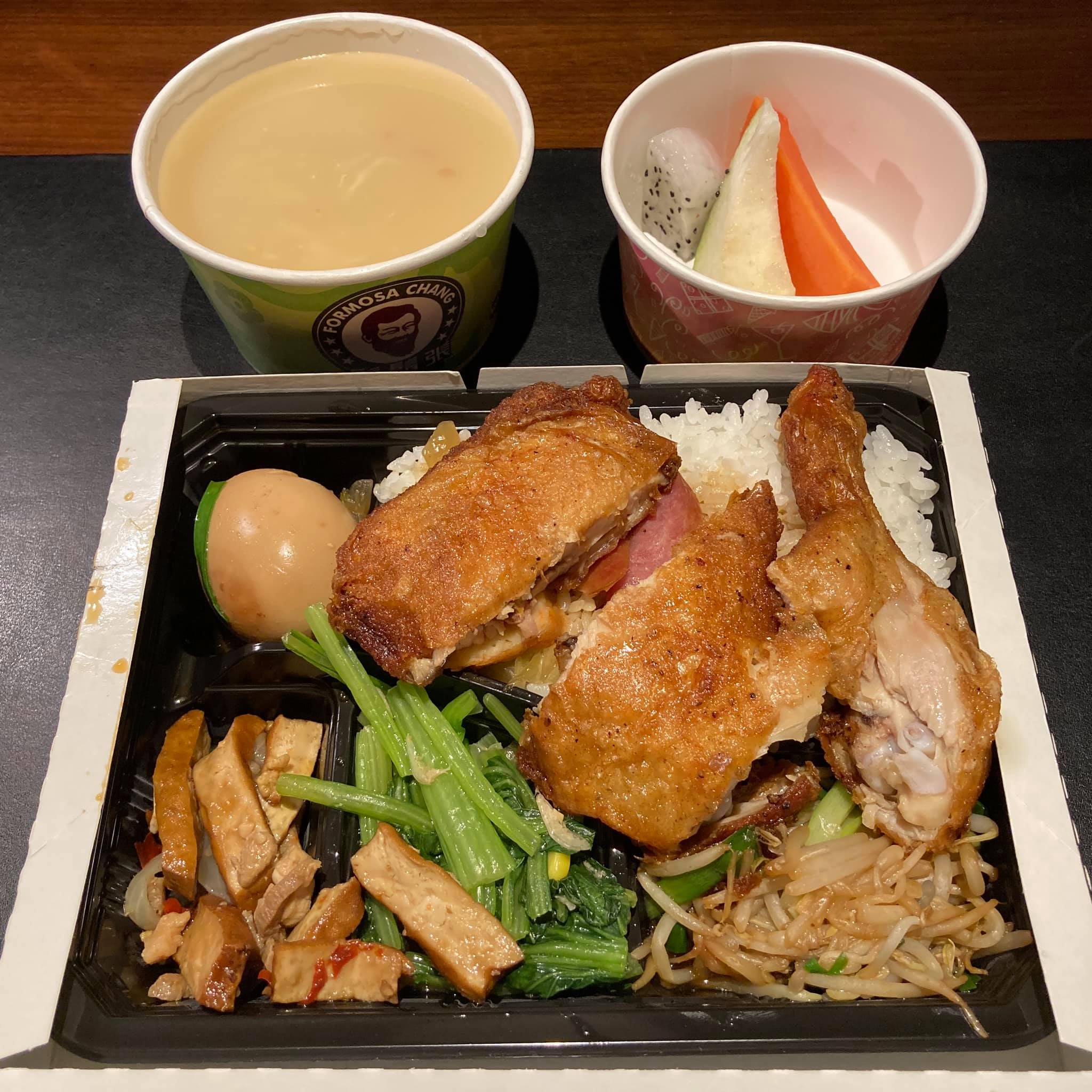 大概了解了一下房間的狀況後,歷經了約25小時的長途旅行的大肚婆,最盼望的莫過於洗個舒舒服服的熱水澡然後用餐,感謝飯店人員的貼心,讓我入住的第一個晚上就倍感呵護,洗完澡立刻就有熱騰騰的鬍鬚張雞腿飯和玉米濃湯可以享用。我還立馬點了一杯天仁茗茶,覺得自己簡直置身天堂!
