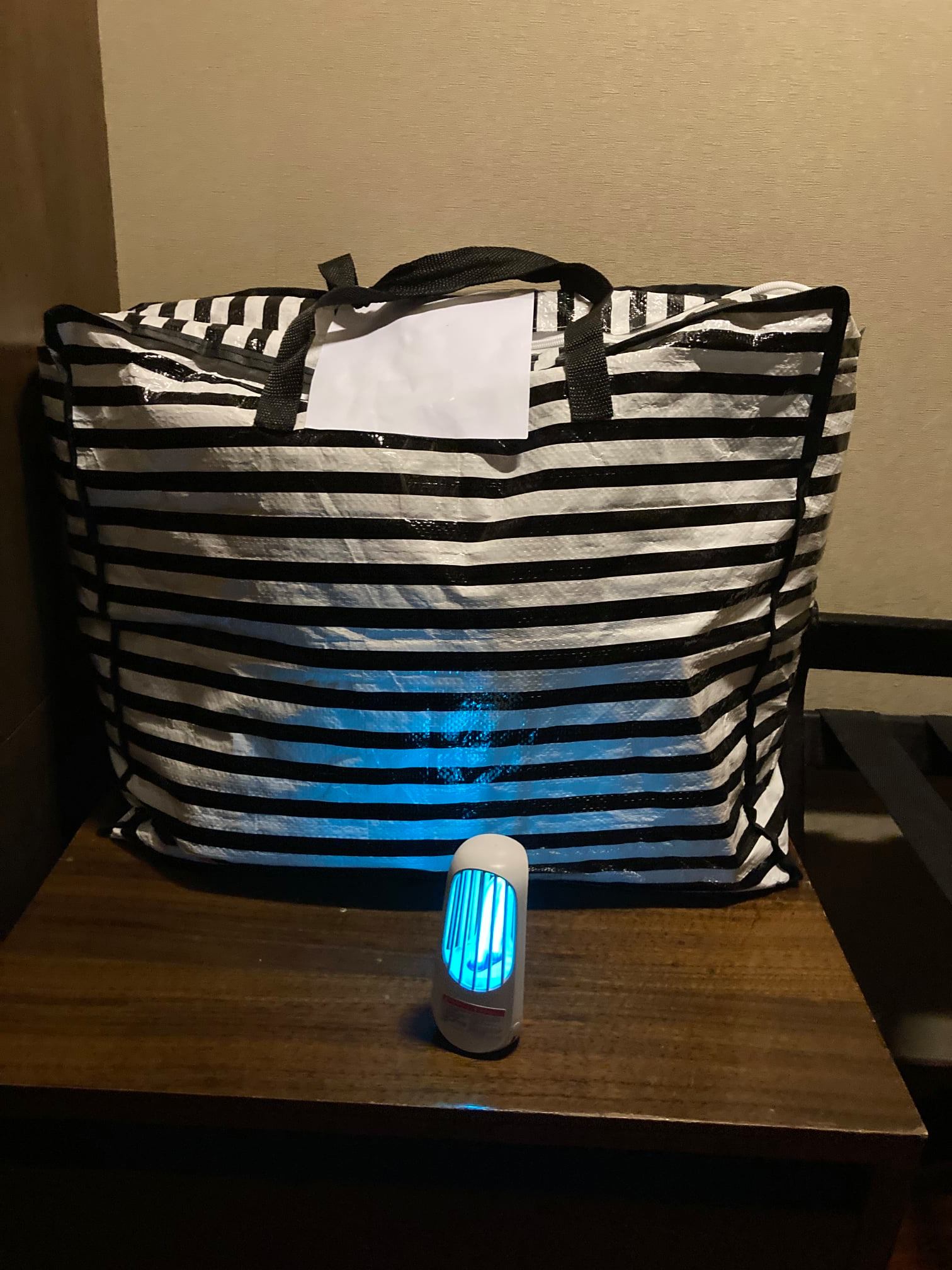 ↓我利用衣櫥當作密閉的消毒箱,用來消毒我在旅程中有可能已經被污染的物品