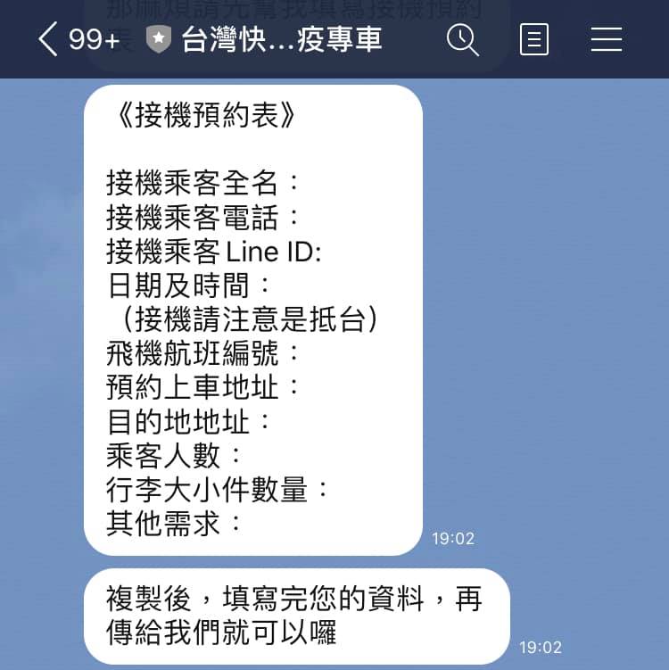 ➡啟程前一天客服主動聯繫提供司機聯繫方式,而在降落台灣後我用Line告知客服我已抵達台灣,也立刻收到司機電話聯繫我,告知我領完行李再通知他,他會到臨停處接我上車。