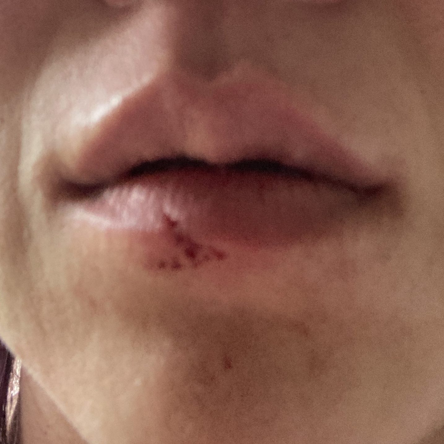 一早照鏡子,嘴唇不腫了,但傷口還是隱隱作痛,而且長長一條在那。不過可以很明顯看到已經開始結痂。