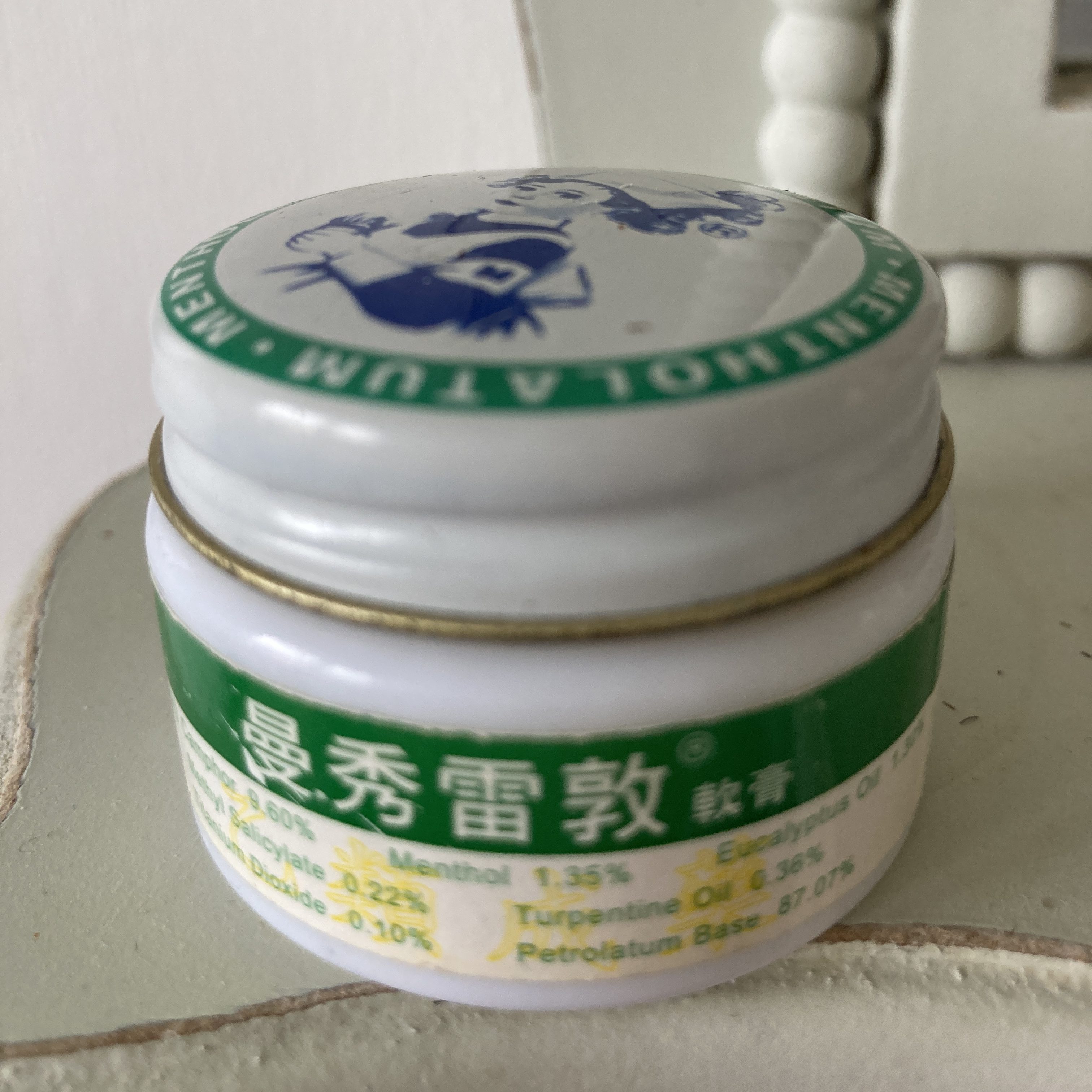 ↓台灣來的(精確一點說應該是日本來的?)神藥之三:曼秀雷敦,阿財口中上面有個娃娃冰冰涼涼的藥