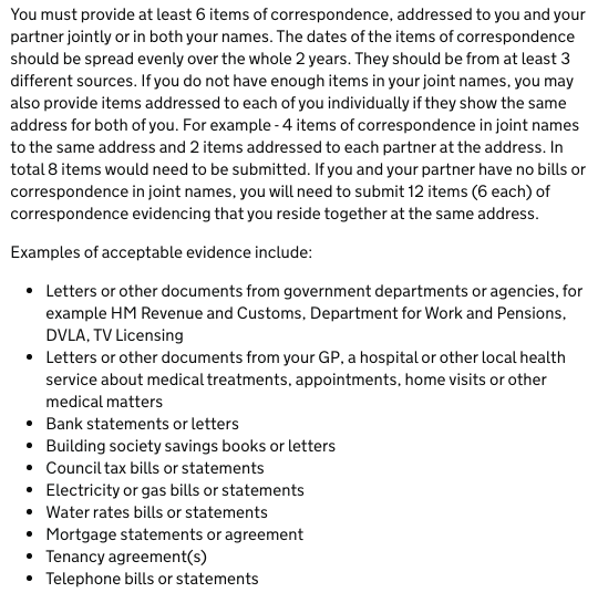 先一起來看一下官網上關於地址/同居證明的文件規定(以下截圖來自官方網站):