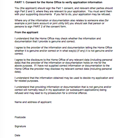 ✔ Part 1: Consent for the home office to verify application information (for the applicant)