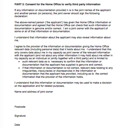 ✔ Part 2: Consent for the Home office to verify third party information (for the husband)