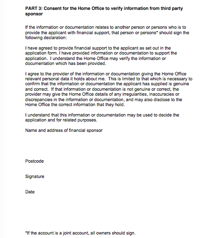 ✔ Part 3: Consent for the Home Office to verify information from third party sponsor (for the husband)