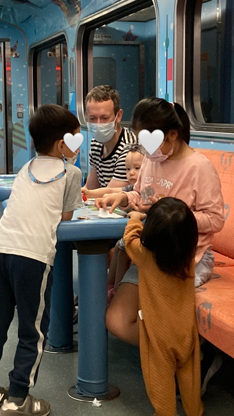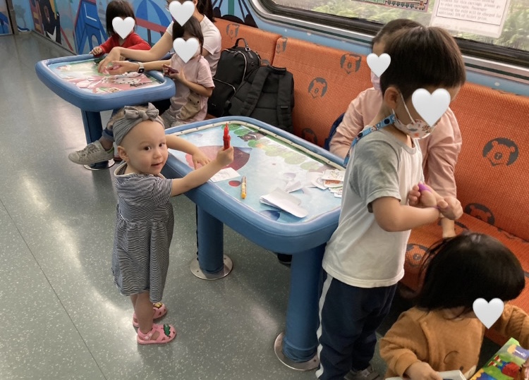 ↓和我們同車的還有一些其他的小朋友,龍三本來有點害(悶)羞(騷)不敢靠近,但後來她鼓起勇氣加入他們的行列,玩得不亦樂乎。