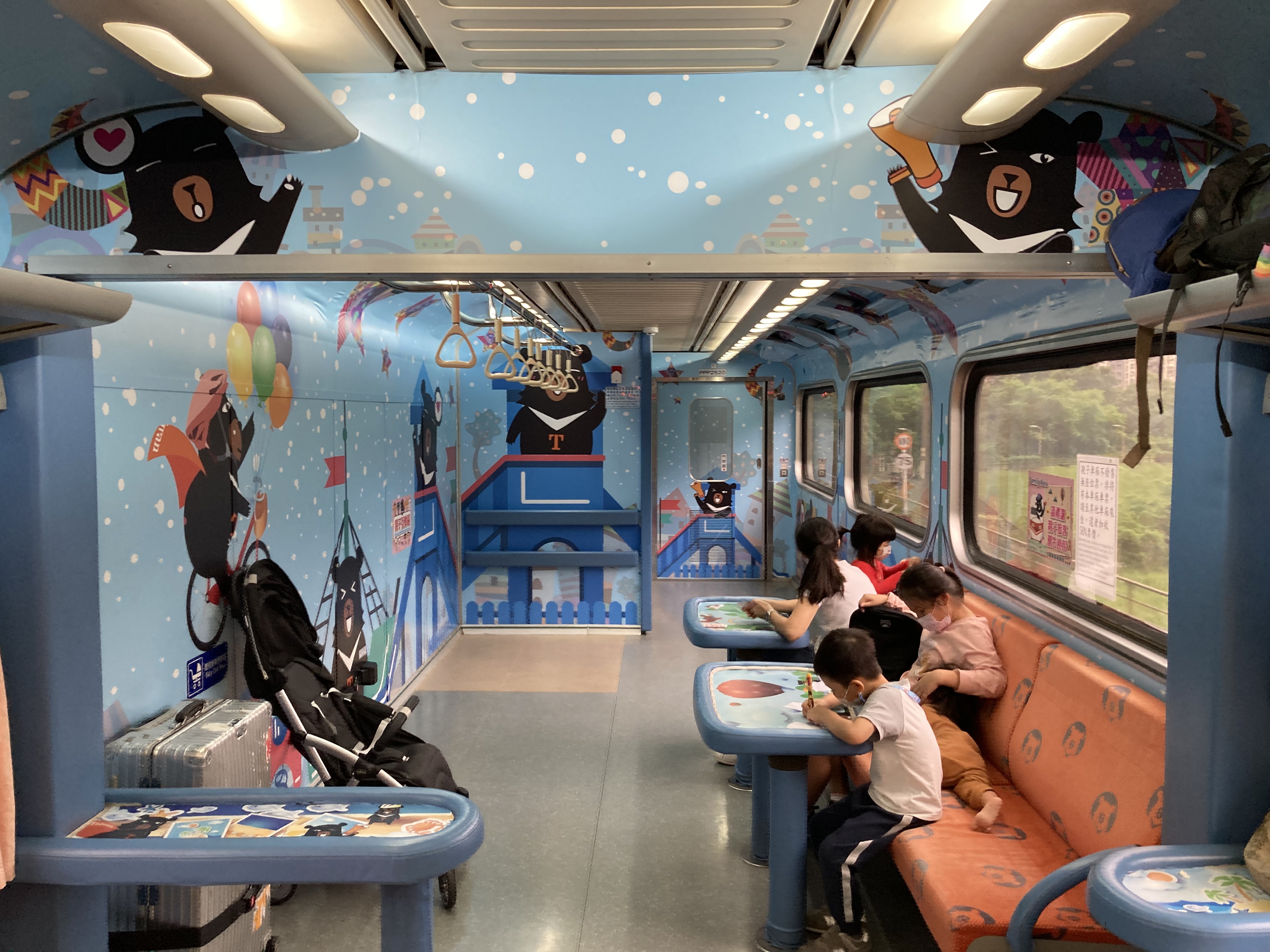 後來做了一下功課,發現自強號真的有些班次設有親子車廂,不但有可愛的台灣黑熊佈置,還有各種親子友善設施,重點是!車票並沒有比較貴!只是爬文發現有些熱門的時段例如週末或寒暑假可能會比較一票難求,有些媽媽甚至還要在凌晨12:00出動不同電腦不同家人的證件去搶票,簡直跟演唱會門票一樣熱門啊!