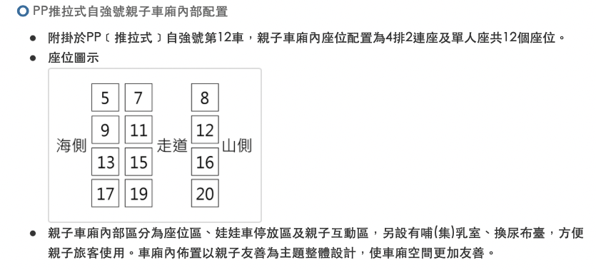 但身為台北俗+火車小白要坐火車出台北真的是有點驚驚,結果有天跟號稱最爽辣媽的小本閒聊這次台灣行的時候,她跟我說台鐵有個限量的親子車廂,想說應該很適合我們這次出遊的行程。