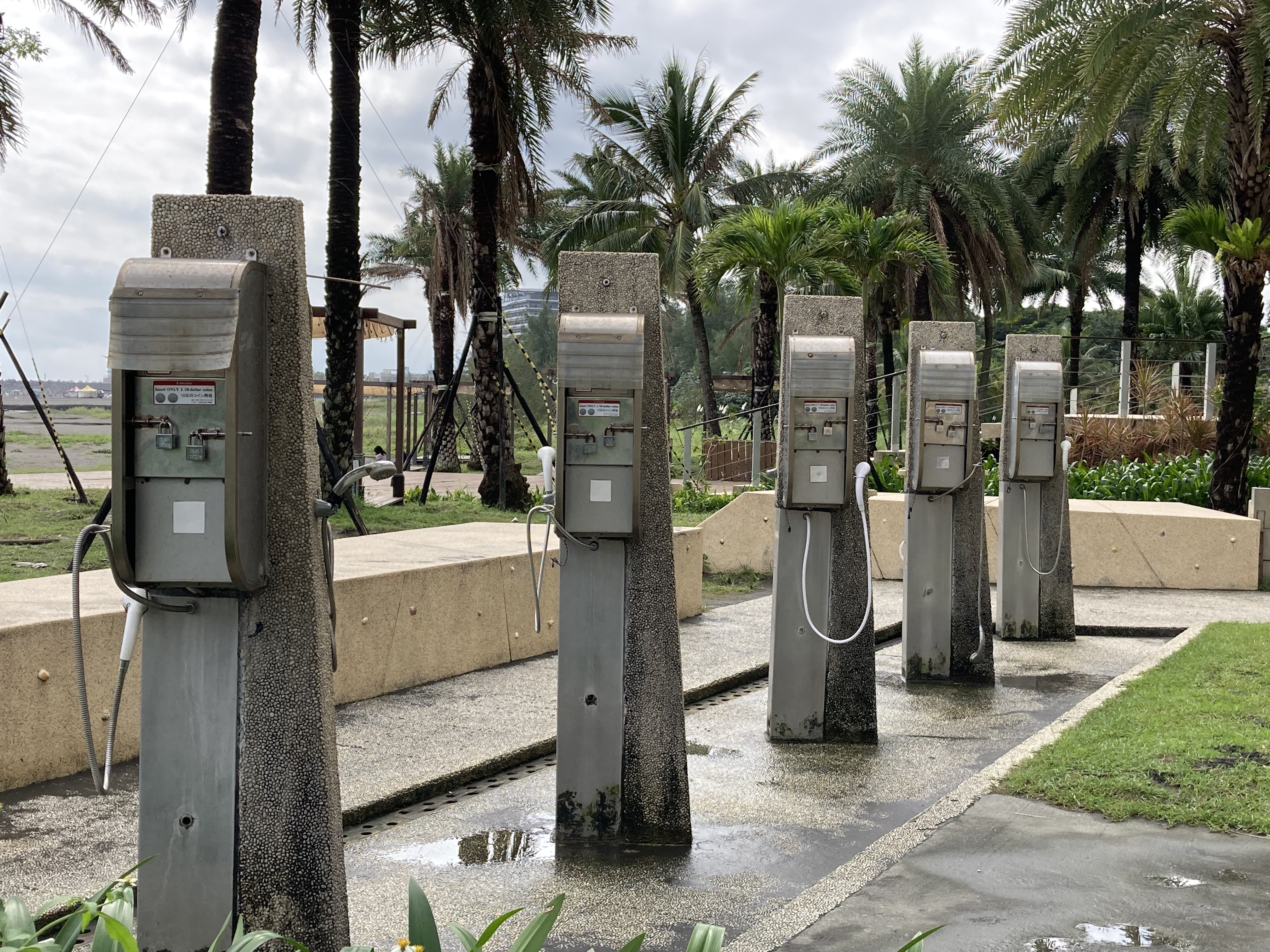 ↓也有這種長得很像公共電話的投幣式蓮蓬頭,離開前可以稍微沖洗一下,記得帶10元銅板喔!