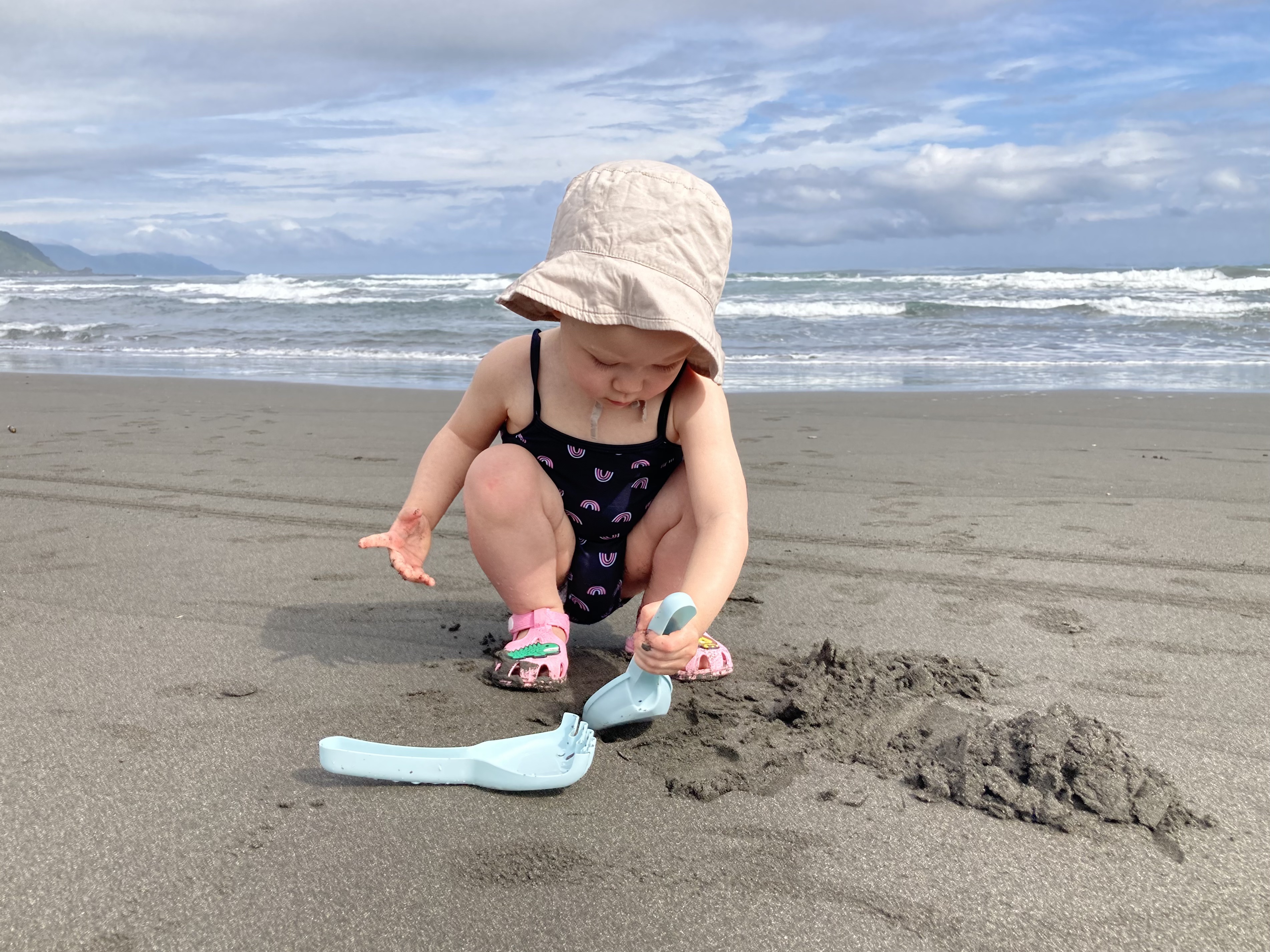 ↓這組玩沙玩具是在我們台北下榻飯店「兄弟飯店」樓下的大創百貨買的,一組才49元,輕便又划算耶!