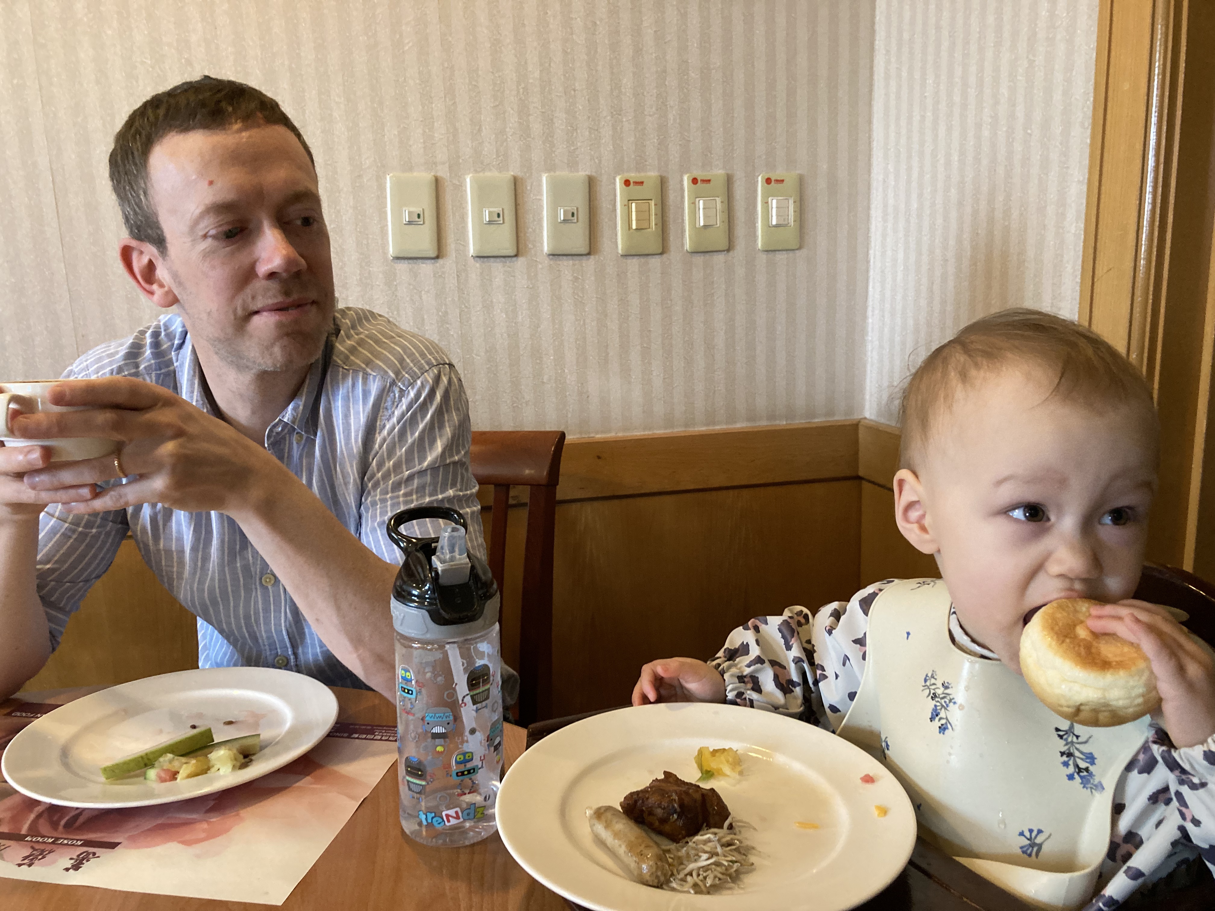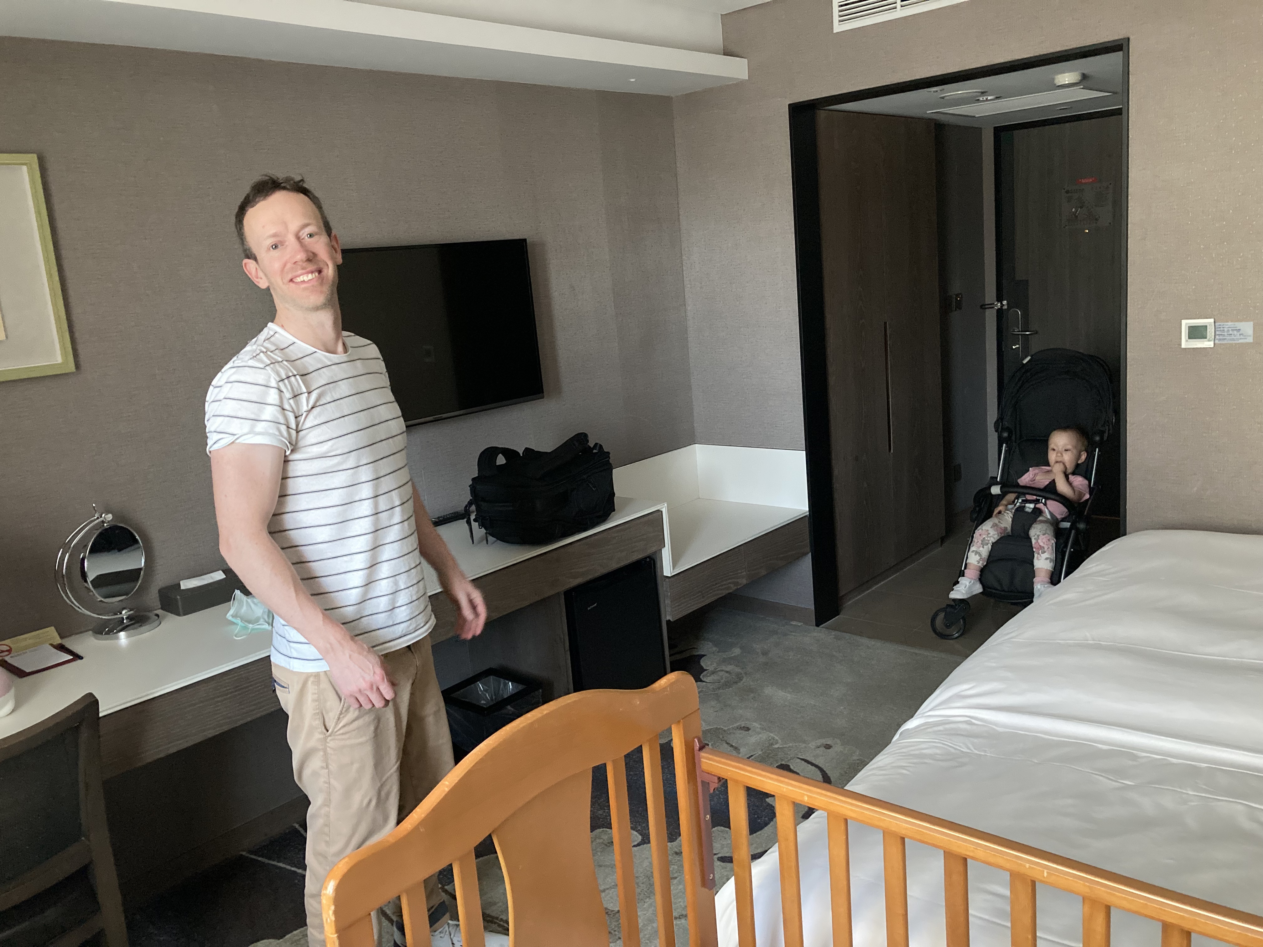 ↓我們訂的是雙人房,本來幫龍三訂了一個嬰兒床(此行第一次入住雙號側的房間)。