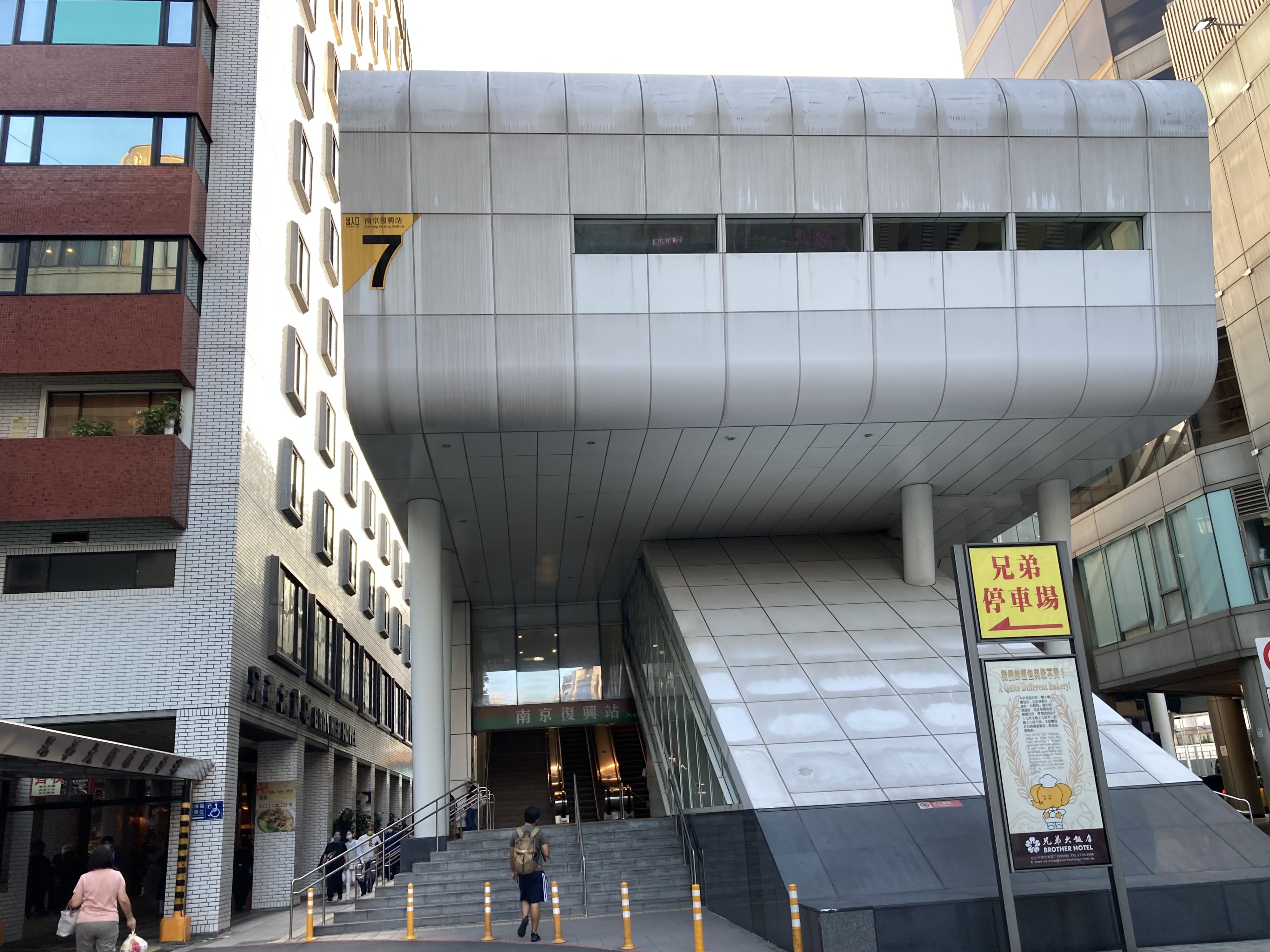 ↓捷運站出/入口更誇張了,兄弟飯店緊鄰捷運綠線和棕線–最近的7號出口,如果走得慢一點大概40秒,如果從樓下麵包店側門抄捷徑的話大概20秒就會到。