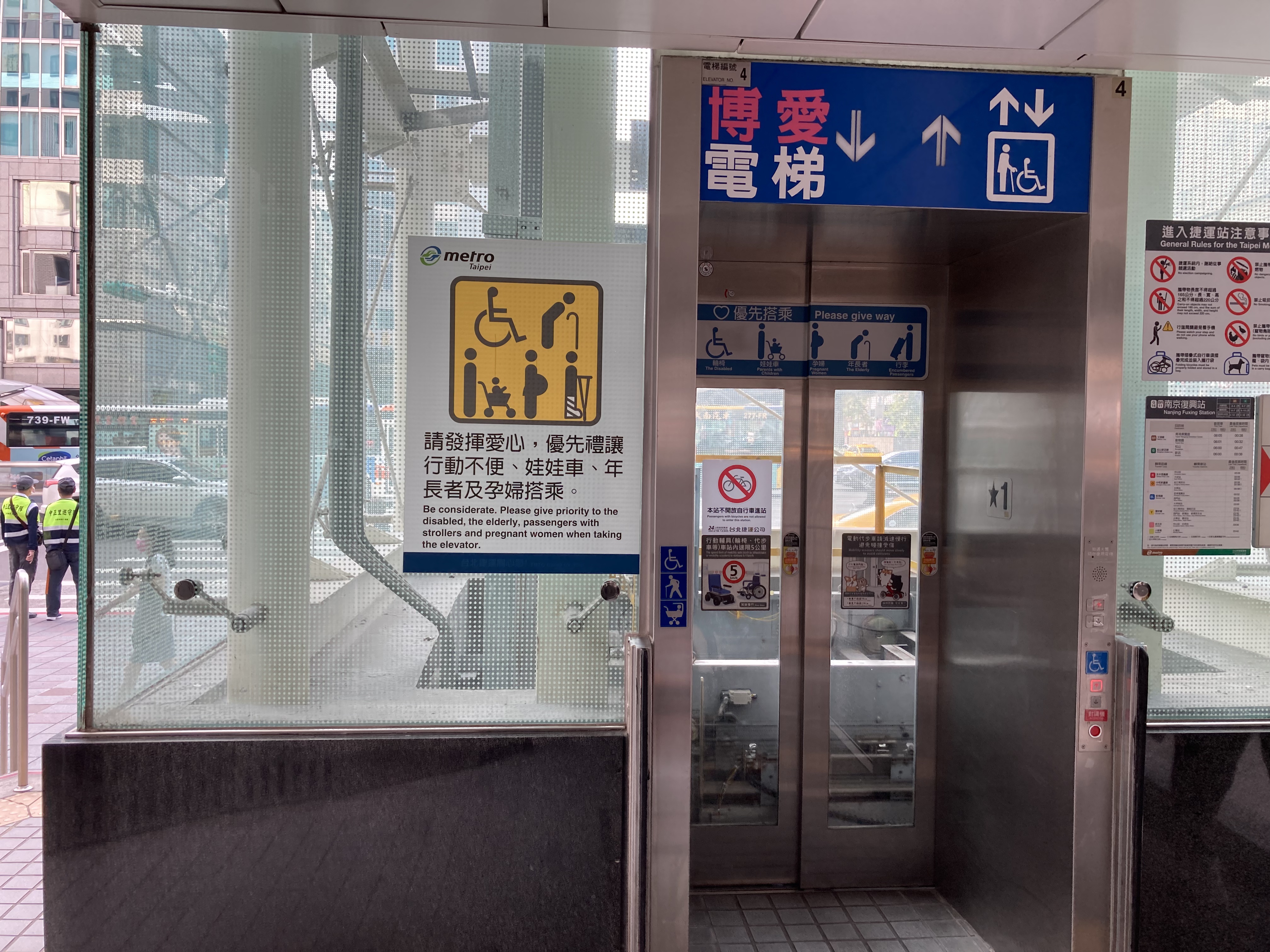 ↓最重要的是!最近的棕線的7號出/入口旁就是斜坡+直達月台層的電梯,對有小孩推娃娃車或不方便搭手扶梯的我們很方便。