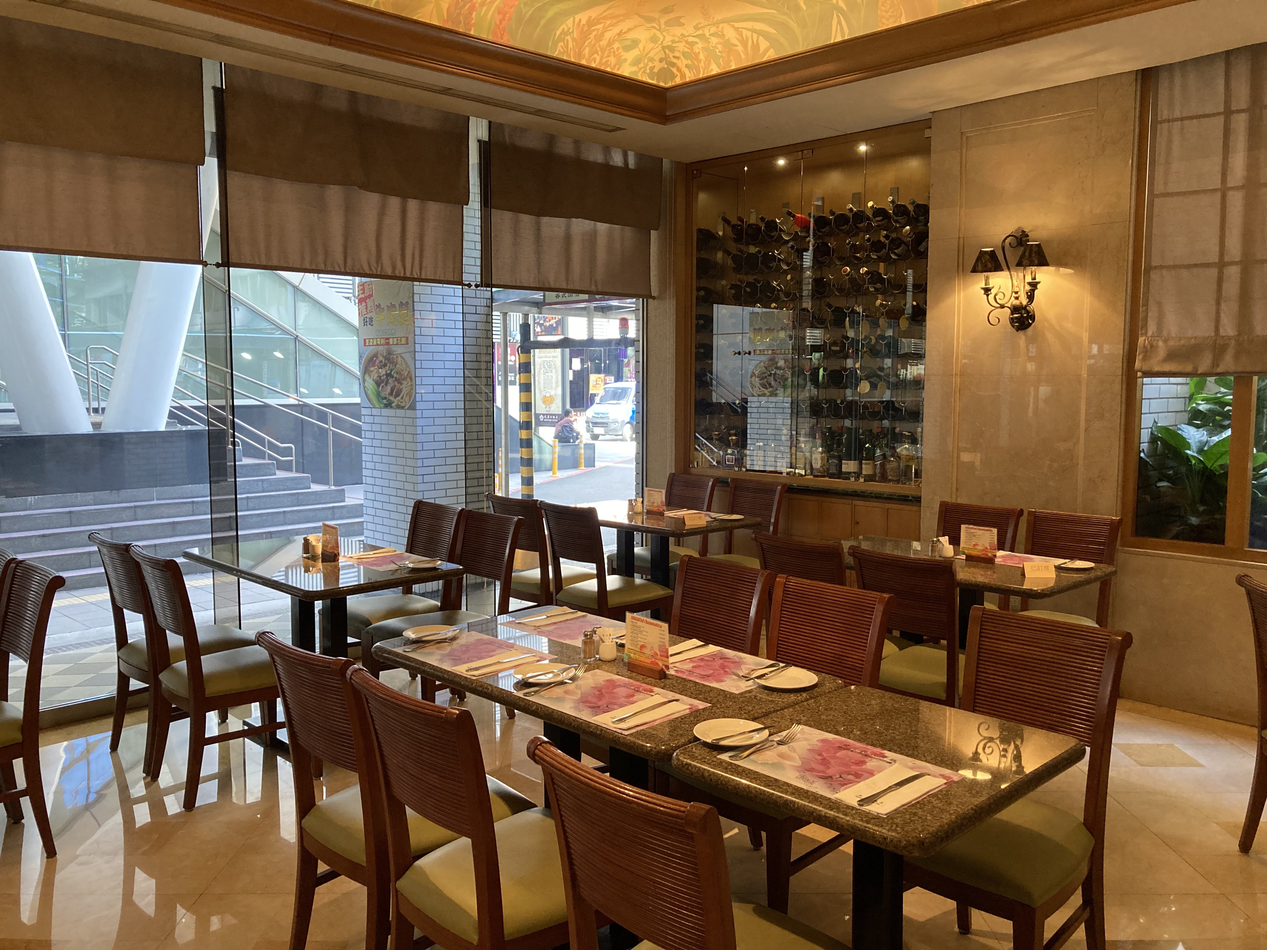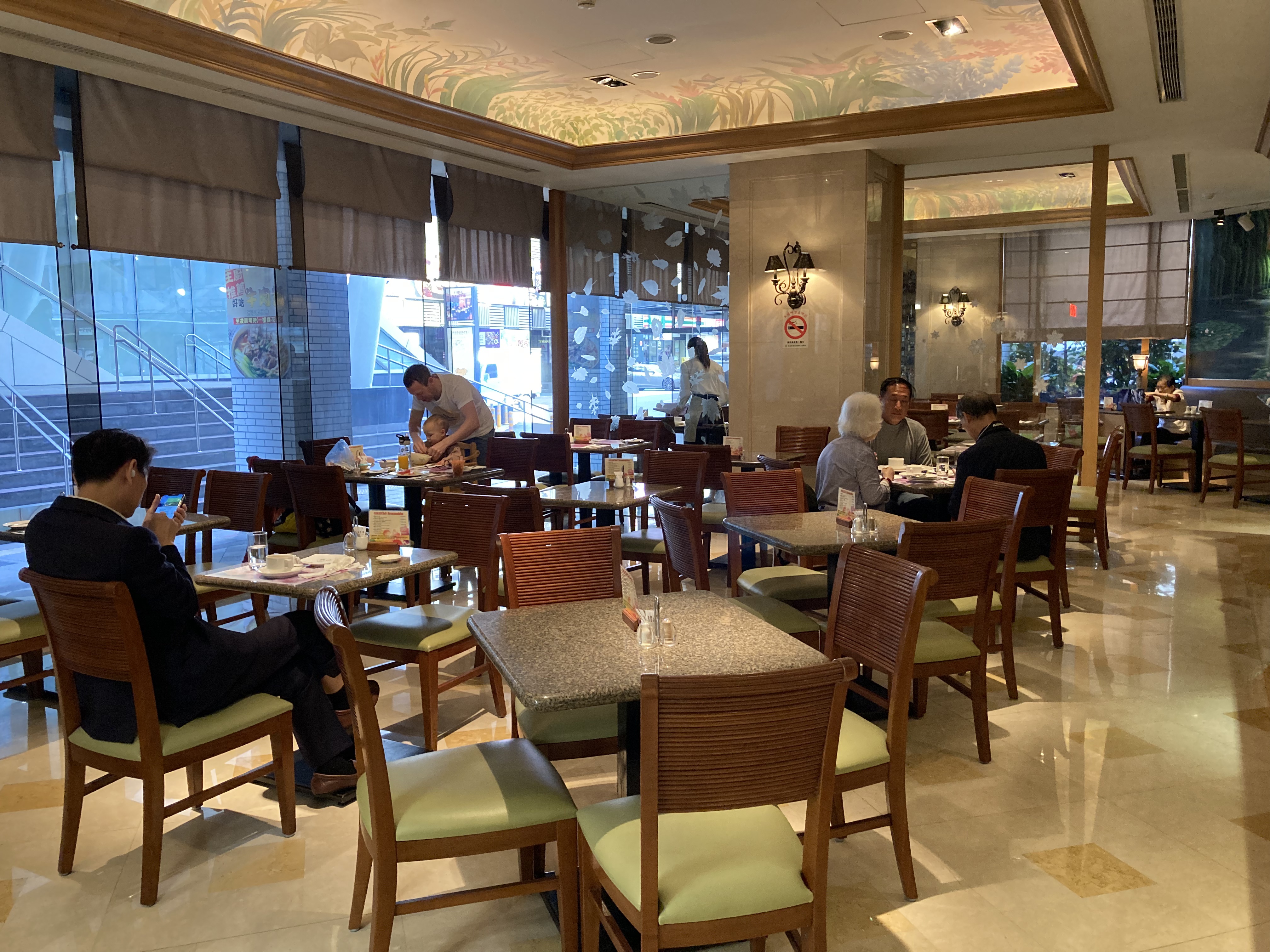 ↓這是1樓吃西式早餐的餐廳【蝶花廳】, 窗外直接就是7號出口的階梯,真的有夠近。