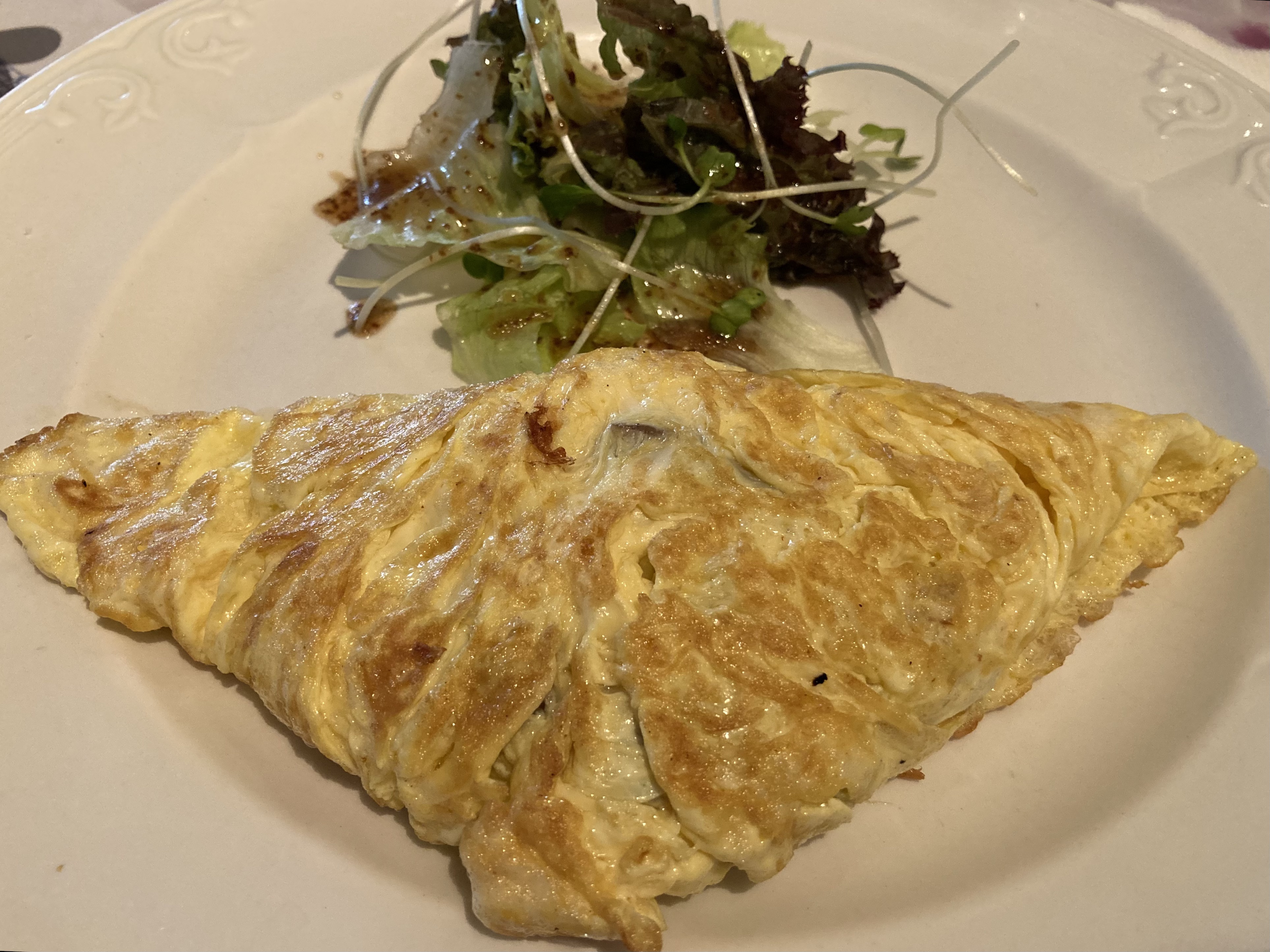 住客需依菜單做選擇,每人的份量都是固定的,但龍三不算一個人頭,所以沒有自己一份早餐(除非要自費再點一份也不是很划得來),她就和老杯老木一起分著吃。