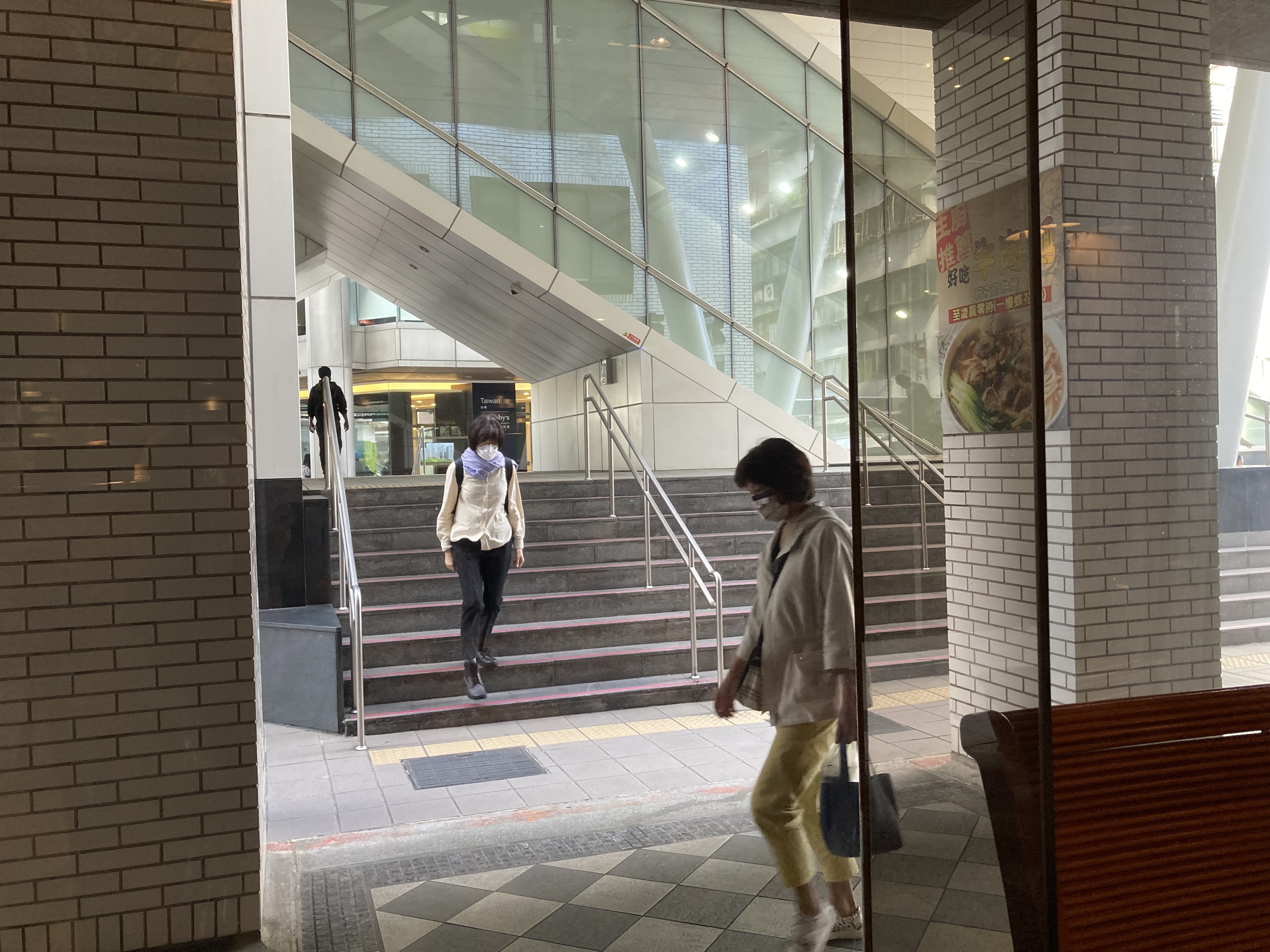 ↓落地窗一旁正對捷運棕線和綠線的7號出口,早高峰時間路人尤其多,龍三就這樣邊吃早餐邊和路人互相欣賞,有點促咪。