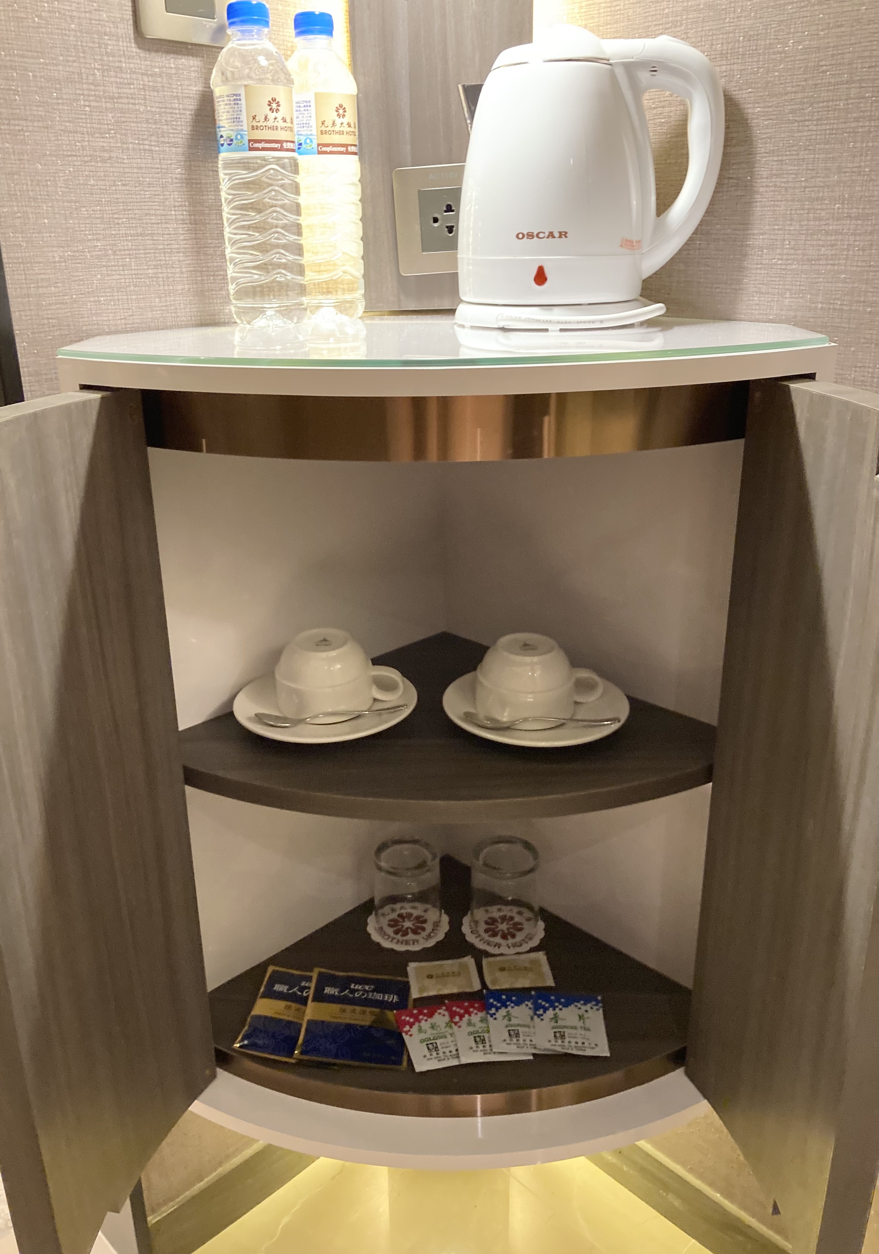 ↓Mini bar提供簡單的杯具,快煮壺,茶包與咖啡。