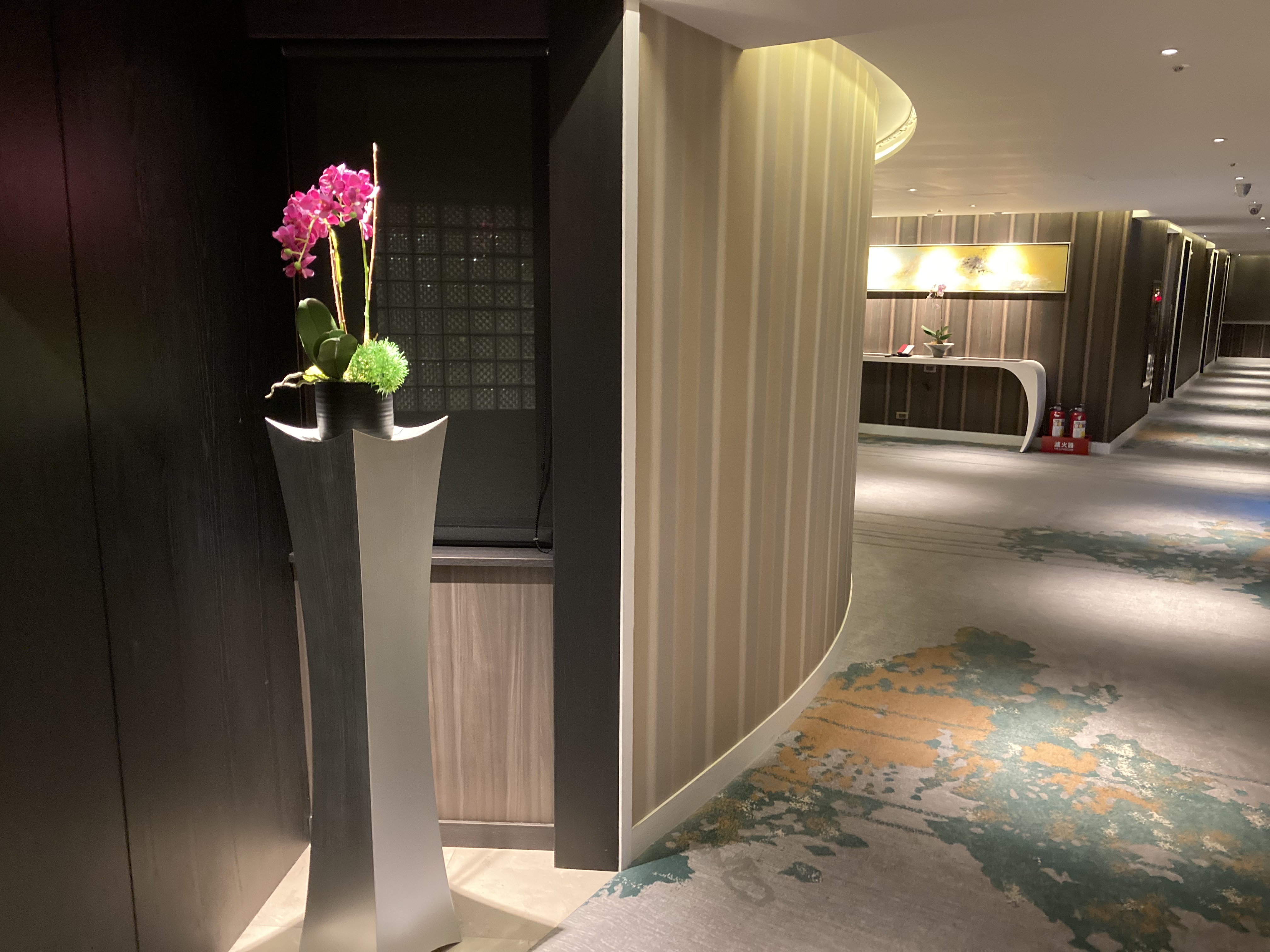 ↓搭電梯抵達客房層後彷彿進到另一個世界一般,果然像網路上查到的,住房樓層相當新。