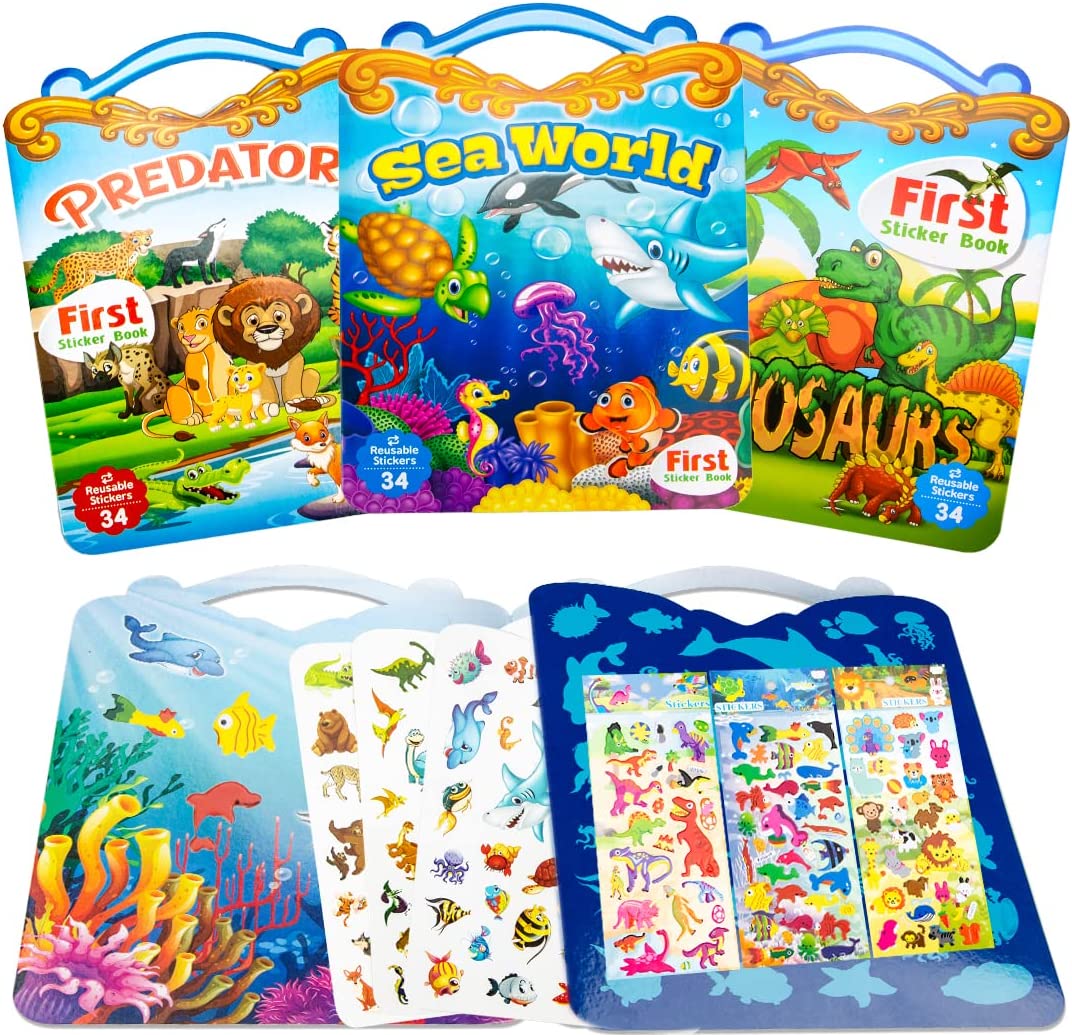 ↑“SWPEED Sticker Books Toys 3 Pack, Reusable Animal Sticker Books Kit with Dinosaur, Sea, Animals Theme Stickers for 2-5 Year Olds Boys, Stickers for Teacher Reward Kids and Birthday Gift Learning Toy” (廠商建議年齡:2y~5y)