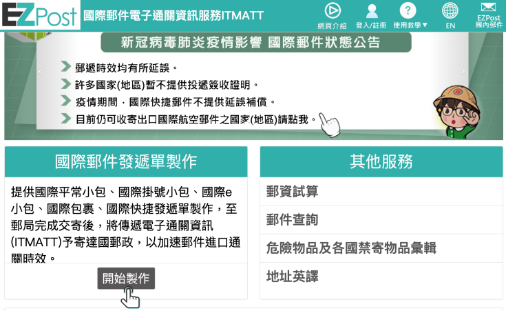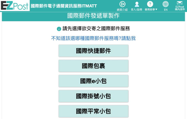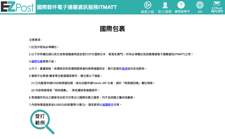 ITMATT (國際郵件發遞單)填寫網頁傳送門 👉🏽👉🏽👉🏽 :https://ezpost.post.gov.tw/itmatt/