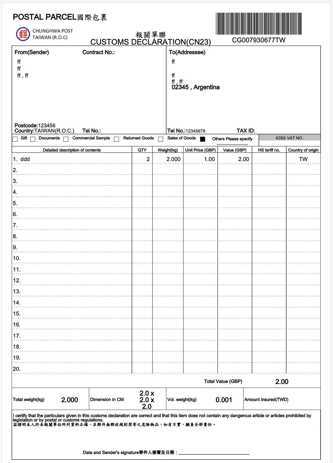 ↑ 依中華郵政公布的消息,自2023年8月1日起,凡寄往英國、瑞士、挪威及加拿大的郵政包裹,都強制要求進口商品類郵件需預先傳遞電子通關資訊 (Photo credit: 中華郵政全球資訊網)