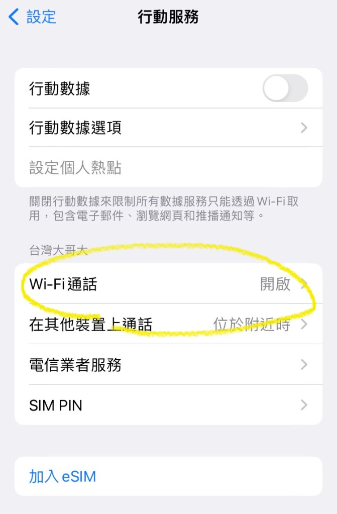 ↓ ⑥ 此時手機已為wifi通話開啟的狀態