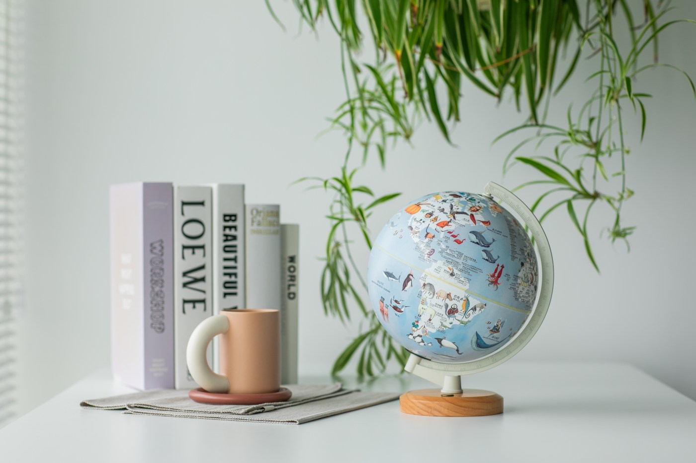很高興4年多來這面佈滿可愛動物的世界地圖陪伴女兒的成長歲月,不過最近女兒開始對家中的地球儀產生興趣,讓我也開始找尋又有顏值又有品質的地球儀,結果宇宙居然聽到我的許願,讓我在threads上面看到一家台灣老店,專門做外銷的地球儀工廠